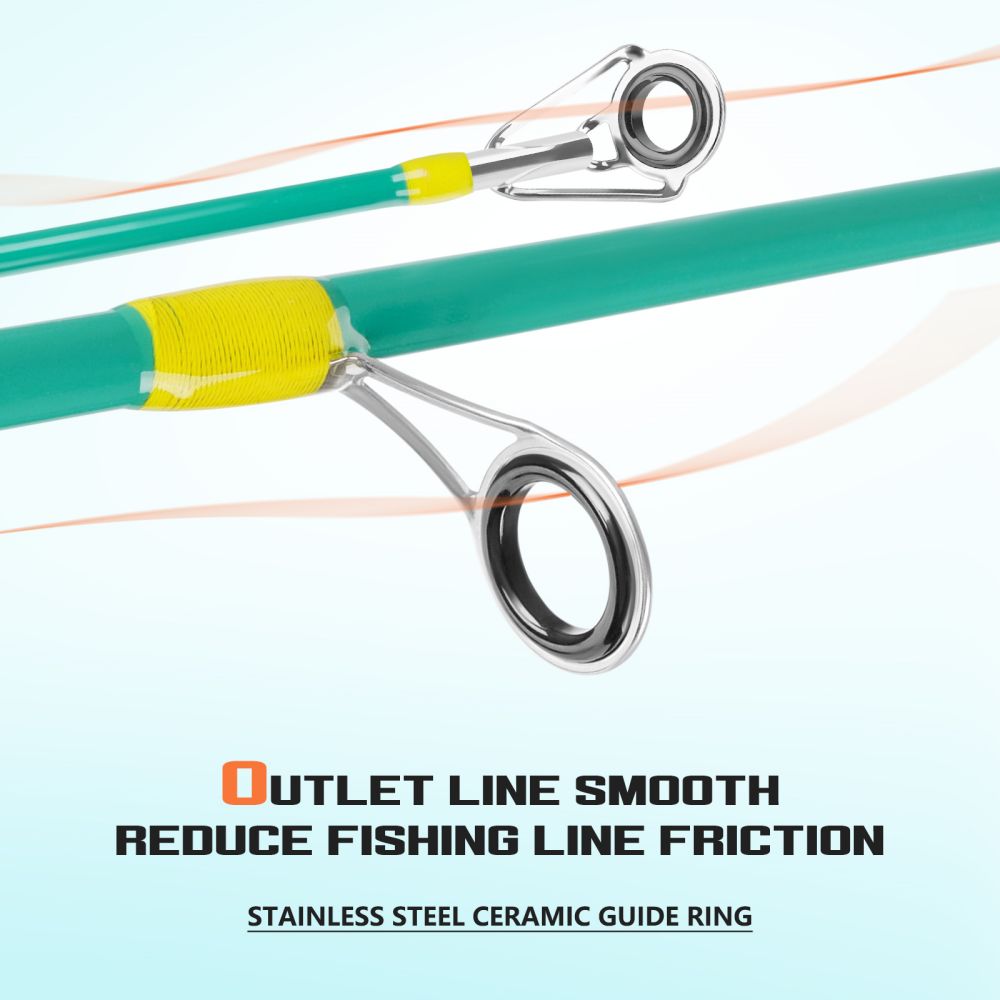 Accurate Casting: The rod features high-quality ceramic rings and welded stainless steel guides for excellent casting distance and accuracy. The medium stiffness fast action design enhances bite detection, and the medium-light strength allows for longer casting distances and superior hooking power.