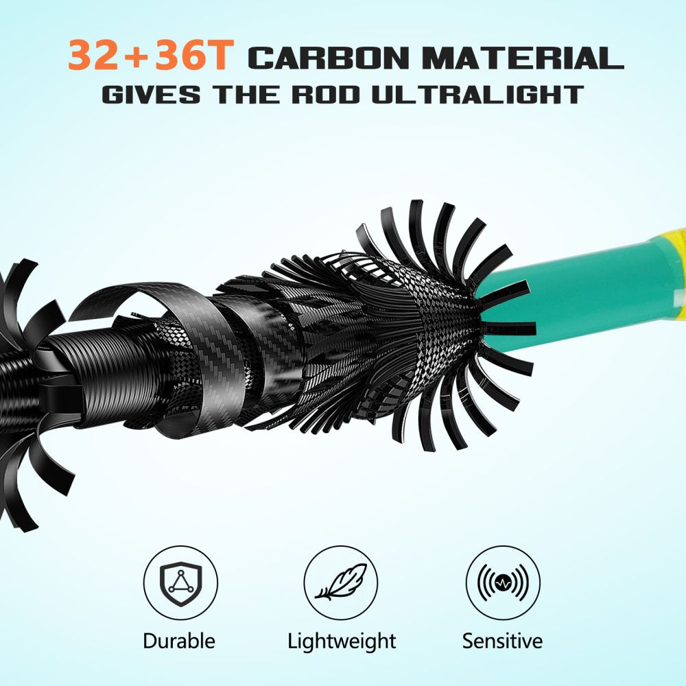 Lightweight and Comfortable: Made from 32+36T carbon fiber, this rod is lightweight yet strong enough to handle even the toughest fish. The cork grip provides all-day comfort and a reliable hold, while the included hook keeper adds convenience to your fishing trips.