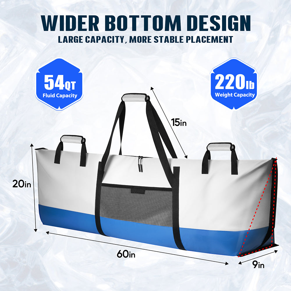 Waterproof & Durable: Constructed from thickened double-layer PVC waterproof material, this fish cooler kill bag is built to last. The leak-proof watertight zippers ensure no water leaks, keeping your car or fishing boat clean. The long puller zippers are easy to operate even with thick gloves, providing convenience and reliability in any fishing condition.