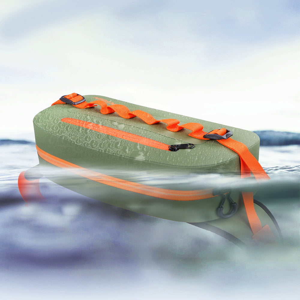 THKFISH Waterproof Fishing Tackle Bag is designed to provide durable and waterproof storage for your fishing gear during outdoor activities like fly fishing, kayaking, and boating. Made of 840D Oxford fabric with a double-sided waterproof TPU coating, this waist pack ensures protection against water intrusion and rugged environments.