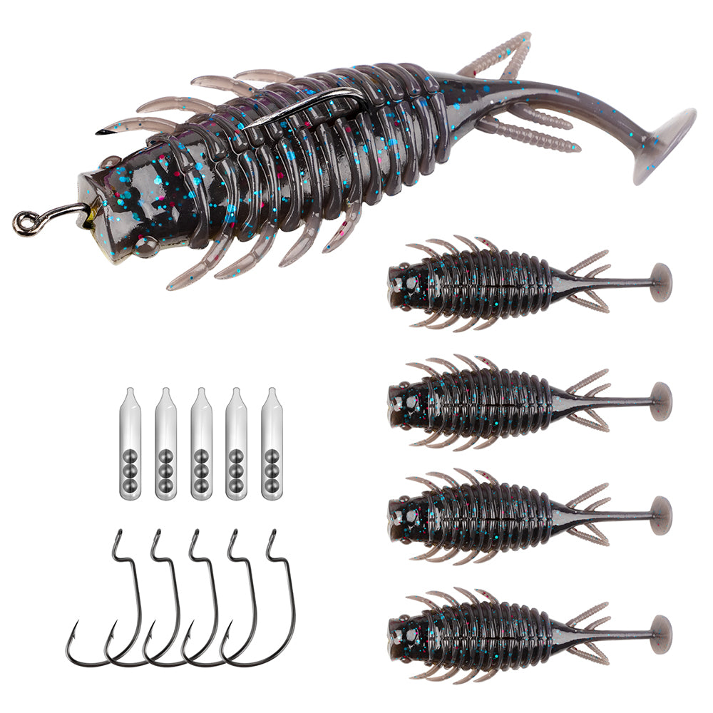 Perfect Soft Swimming Action: The soft swimbait is highly flexible and maintains its condition even after multiple casts. It exhibits a realistic wiggling motion, mimicking a real worm, with vibrating legs and a twitchy tail for added swimming action.