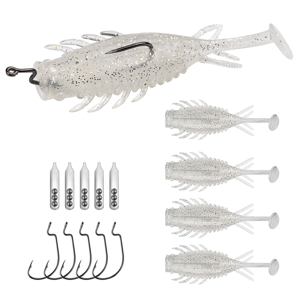Package Includes 5pcs soft lures, 5pcs fish attracting noise beads, 5pcs crank hooks