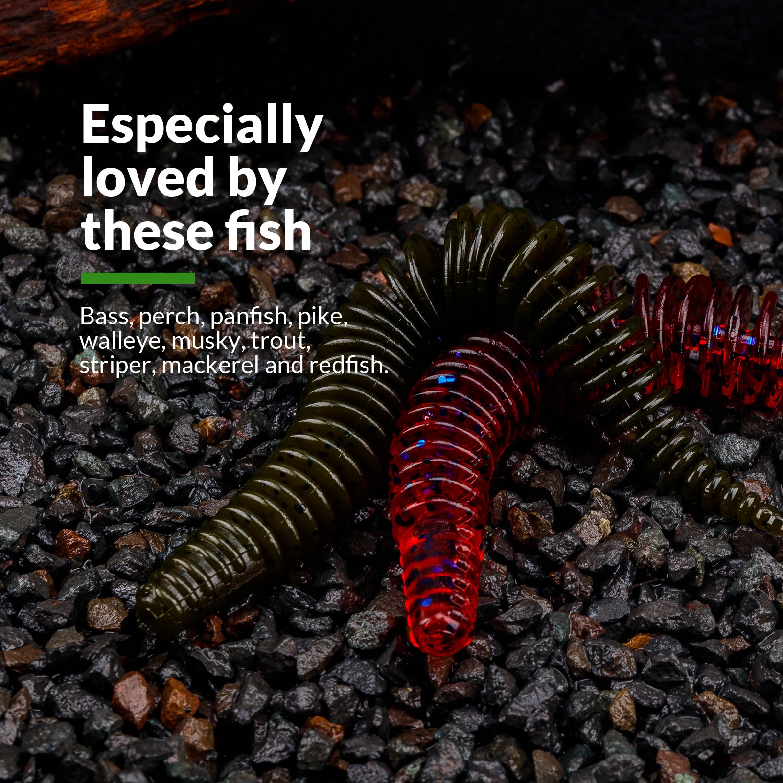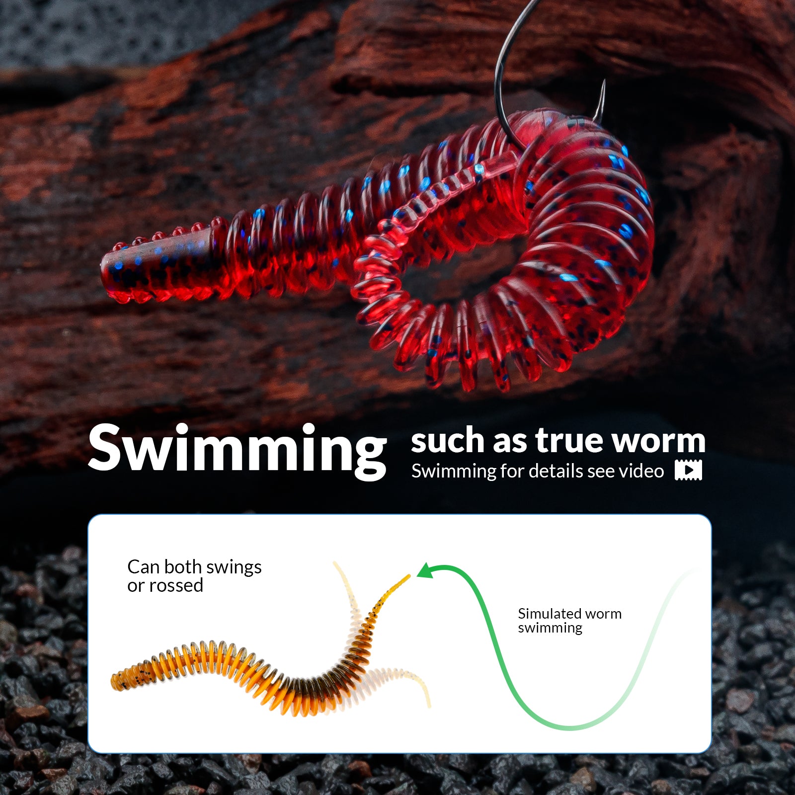 Realistic Action: The soft plastic construction of these fishing worms allows them to mimic the natural movement of live bait, enticing bass, redfish, and other target species. Their lifelike action makes them irresistible to fish, increasing your chances of a successful catch.