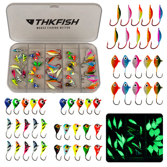 THKFISH Ice Fishing Jigs Kit 50PCS