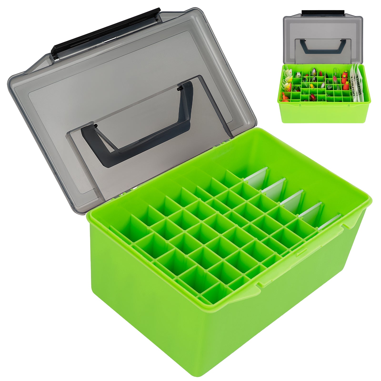 Large Capacity: With 52 compartments, the fishing tackle boxes provide ample space to organize your lures, floats, and other fishing gear. Say goodbye to cluttered tackle boxes and hello to the efficient organization on every fishing trip.