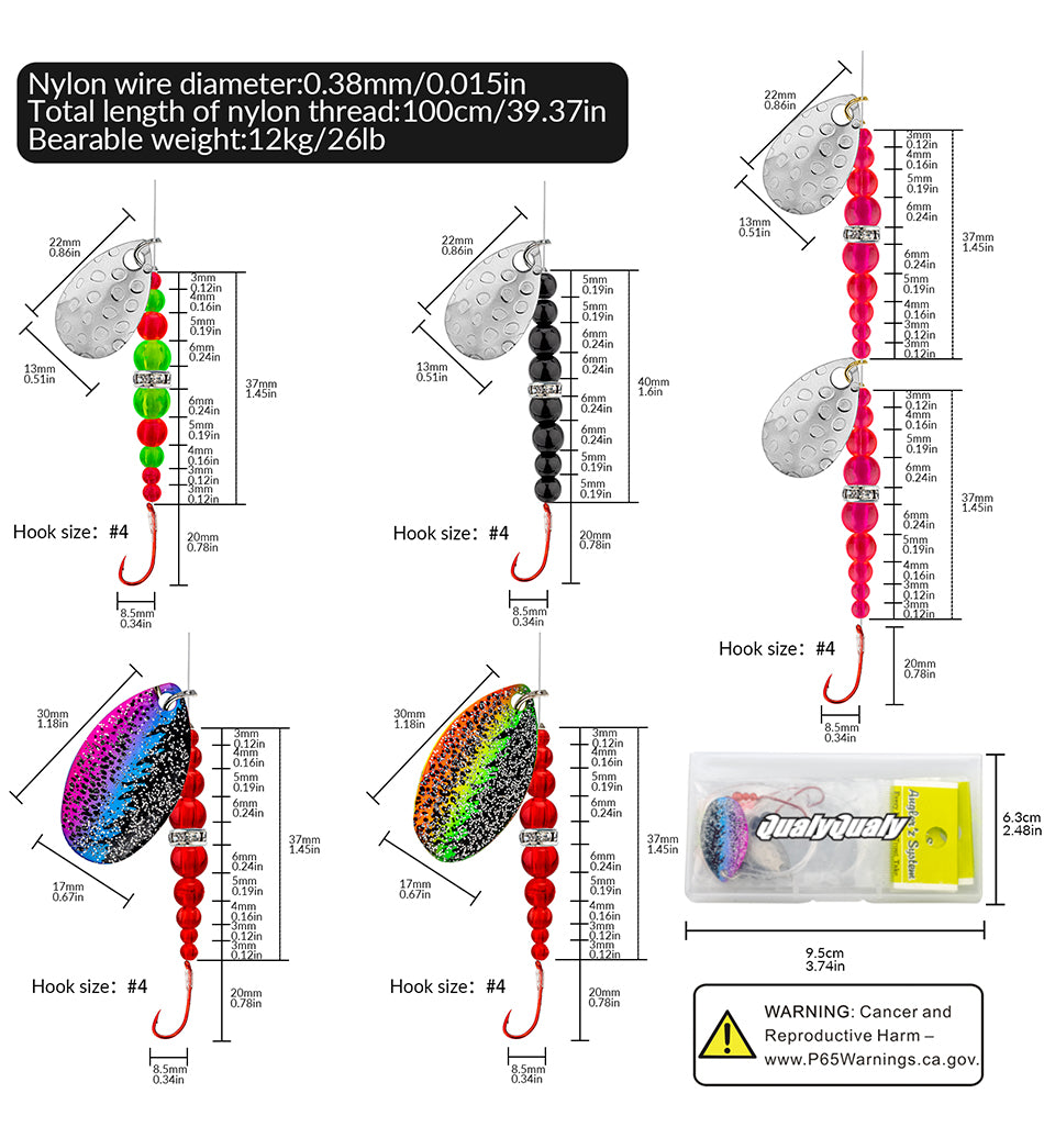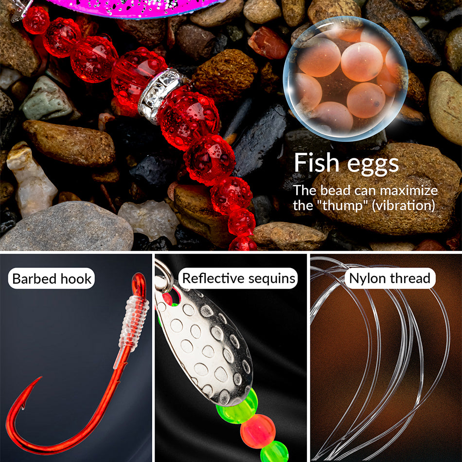 Premium Material: Equipped with sharp high carbon steel hooks and durable hard plastic beads, these rigs are designed for wear-resistance and long-lasting use. The fishing blades provide a bright and vibration-heavy presentation that appeals to a wide range of predators, ensuring a successful fishing experience.