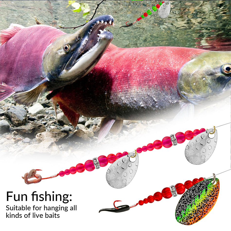 Attractive Fishing Lure Rig: Each Walleye Rig comes with fishing beads, blades, and hooks, offering a colorful and attractive appearance in the water. The vivid swimming action of the blades attracts the attention of various fish species, making it an ideal choice for trout and other predators.