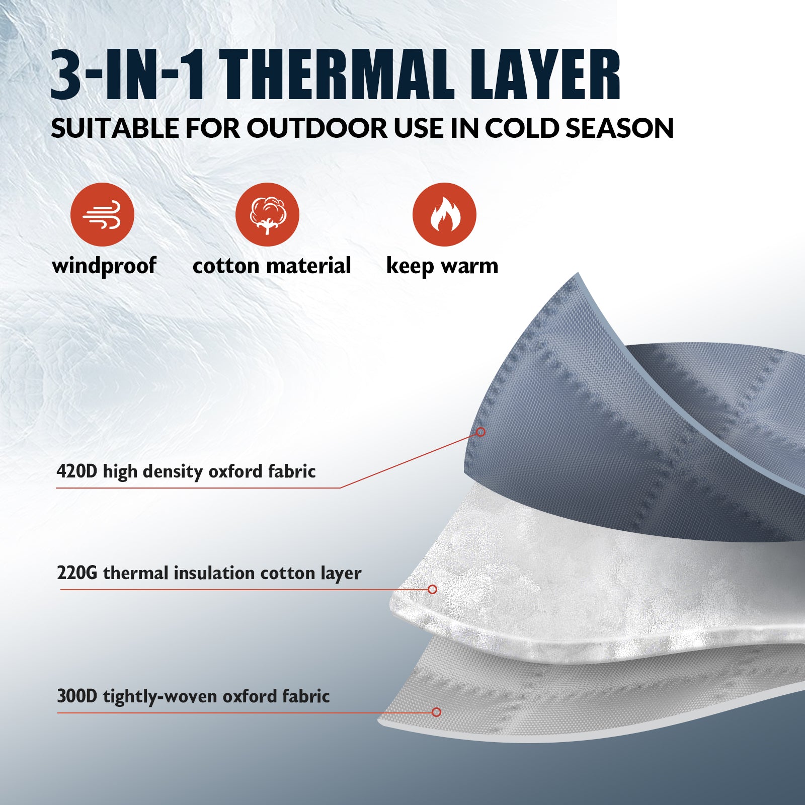 - Enhanced Warmth: Made from 420D Oxford fabric with 220 grams of insulation per square meter, the tent is 50% warmer than basic ice shacks. The double-extended hem design minimizes heat loss and blocks cold air, ensuring a cozy interior.