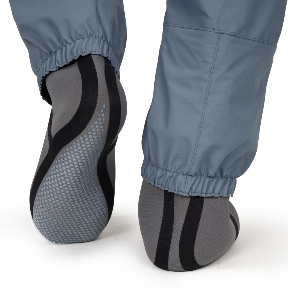 100% Waterproof & Lightweight: Constructed with three layers of fabric, including waterproof nylon and comfortable polyester mesh, these waders are lightweight yet highly effective at keeping you dry. The stocking foot design is also waterproof and comfortable without adding bulkiness.