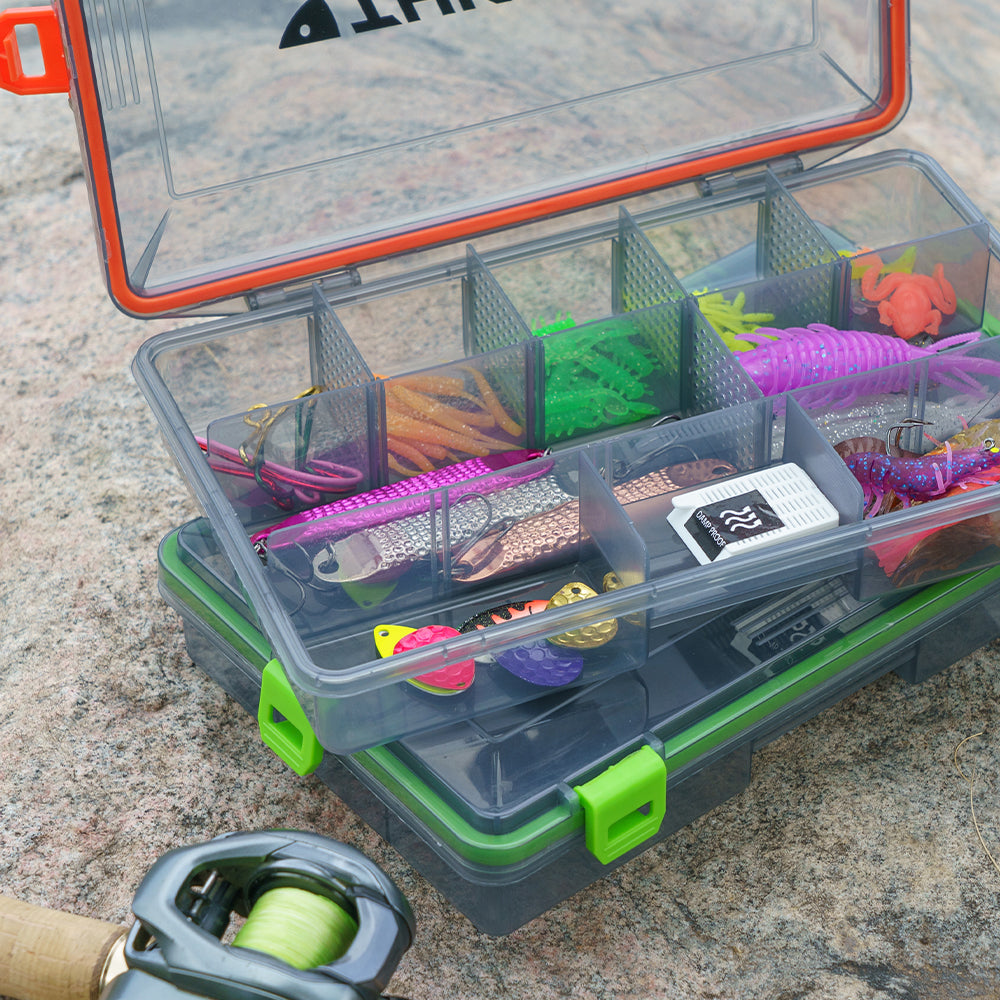 Transparent Lid with UV Protection: The translucent lid allows for quick identification of contents, while the light black design protects your lures from harmful UV rays, extending their lifespan. The snug fit between the lid and the box prevents lures from shifting during transport.