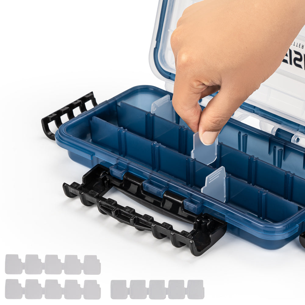 Customizable Tackle Organizer: The 3500 fishing lure organizer includes 15 removable dividers, allowing you to personalize the interior layout according to your needs. This tackle organizer box is ideal for accommodating a variety of lures and fishing accessories. Each divider features a non-slip design and small holes for improved ventilation, ensuring your tackle stays in optimal condition. (Note: The 3400 Fishing Tackle Box does not include dividers.)