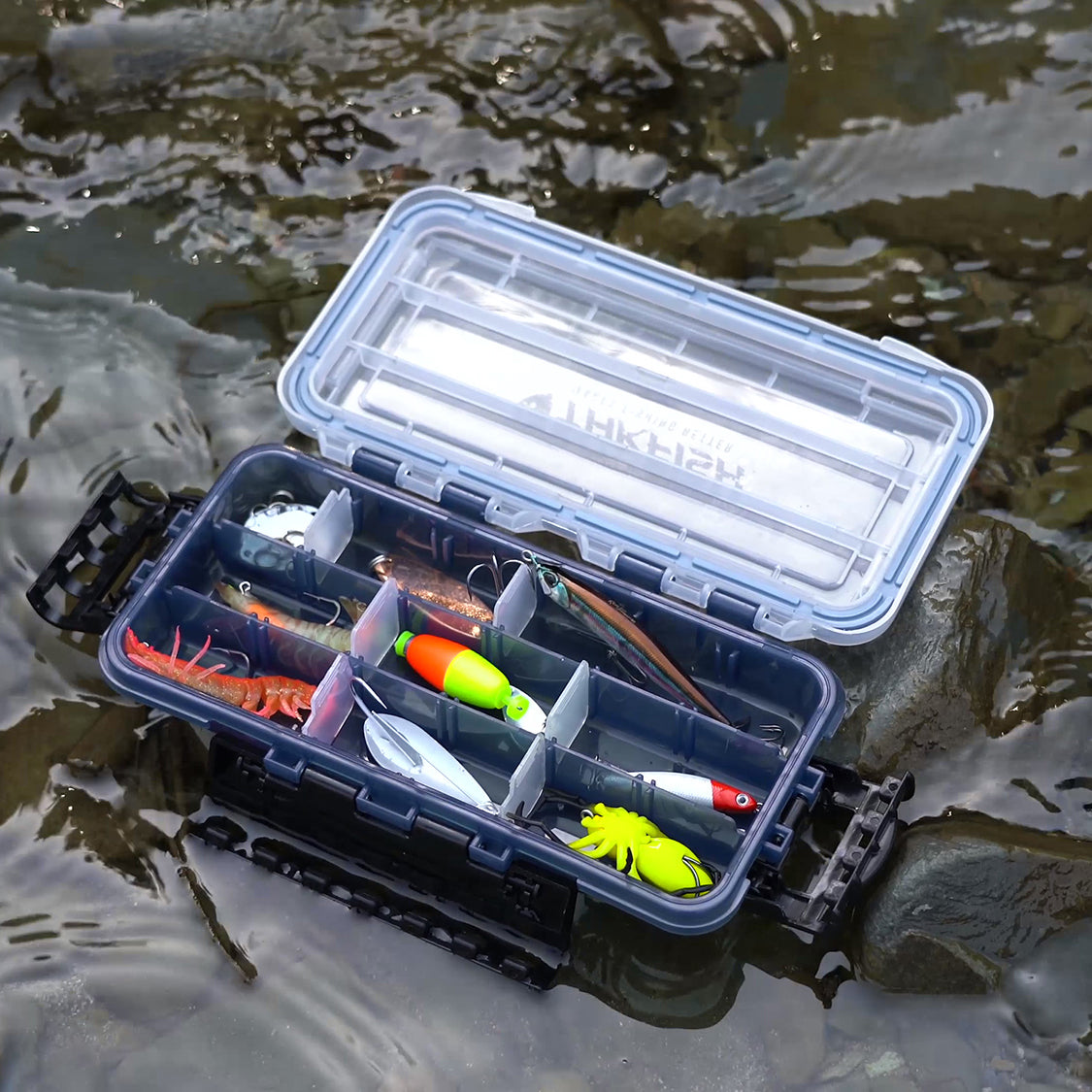 Transparent Lid with UV Protection: The translucent lid of the fishing accessories box allows for quick and easy identification of the contents. The light black design protects your lures from sun exposure, extending their lifespan and reducing the need for frequent replacements due to fading or oxidation. The tight fit between the lid and the box prevents lures from shifting between compartments during transport.