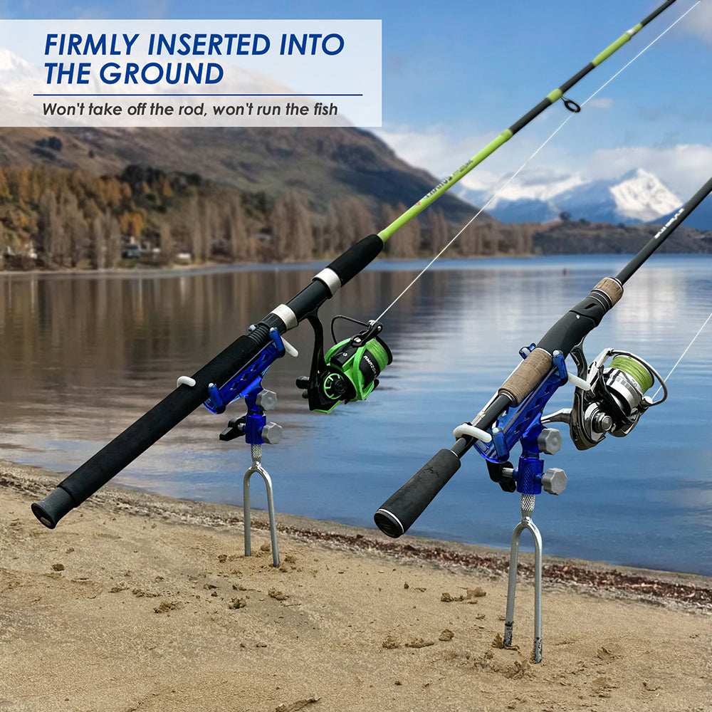 360° Adjustable: The fishing rod holders can rotate 360° horizontally and adjust vertically over a wide range. The screw mechanism allows you to easily set the desired angle, while the threading on the grounding rod and clips ensures stability.