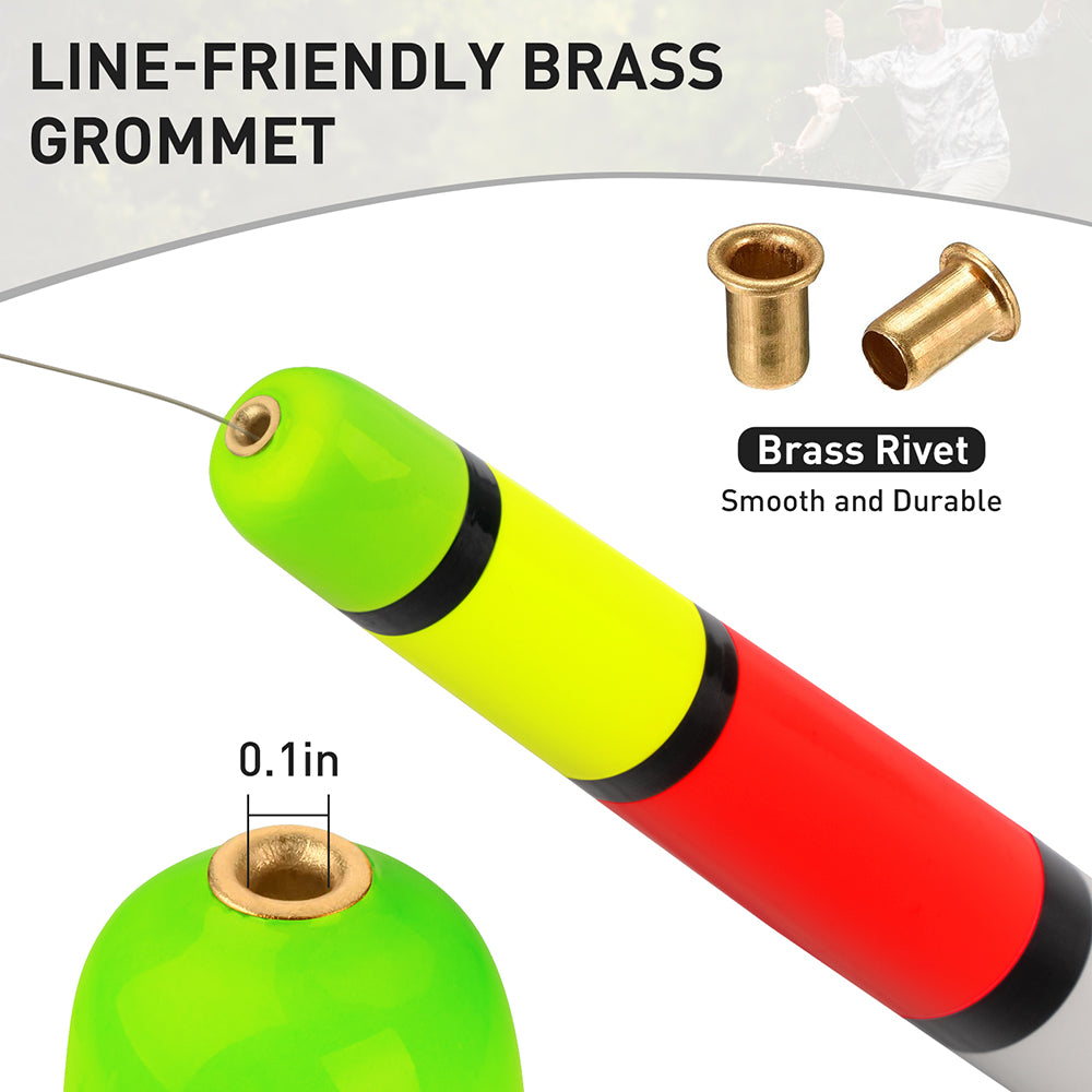 Balsa Material and Brass Rivet: Crafted from high-quality balsa wood, these floats offer excellent buoyancy and resistance to cracking or chipping. The brass rivets at the top and bottom are smooth, durable, and gentle on the fishing line.