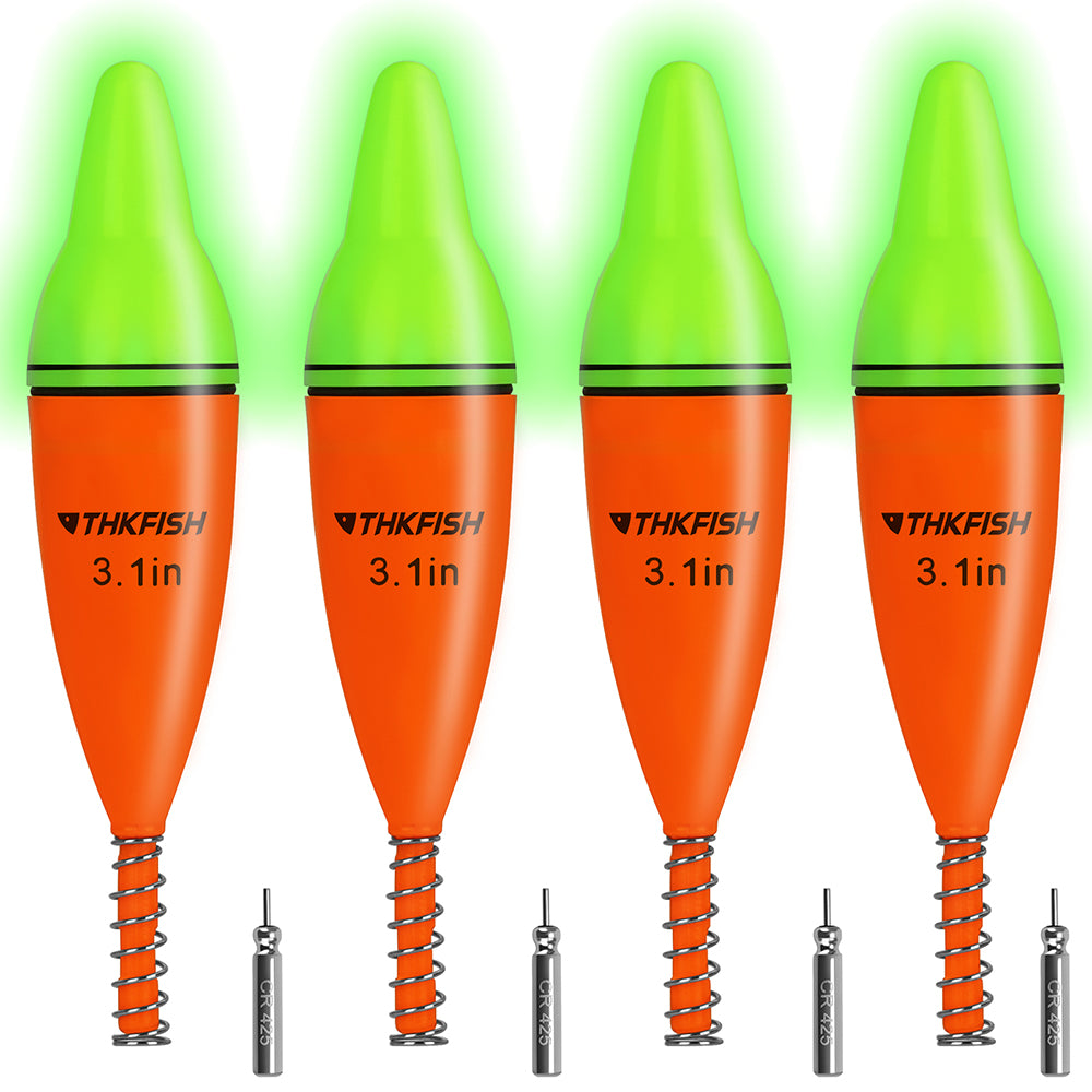 Illuminate your fishing experience with THKFISH 4PCS LED Lighted Fishing Bobbers. These innovative bobbers are designed to enhance visibility and sensitivity, making them perfect for day and night fishing adventures.