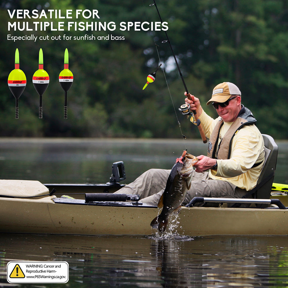 Bright Colors and 3 Sizes: Featuring LED-lighted options, these bobbers ensure excellent visibility even at long distances. Choose from three sizes: 1.5in, 1.75in, and 2in to suit your fishing preferences.