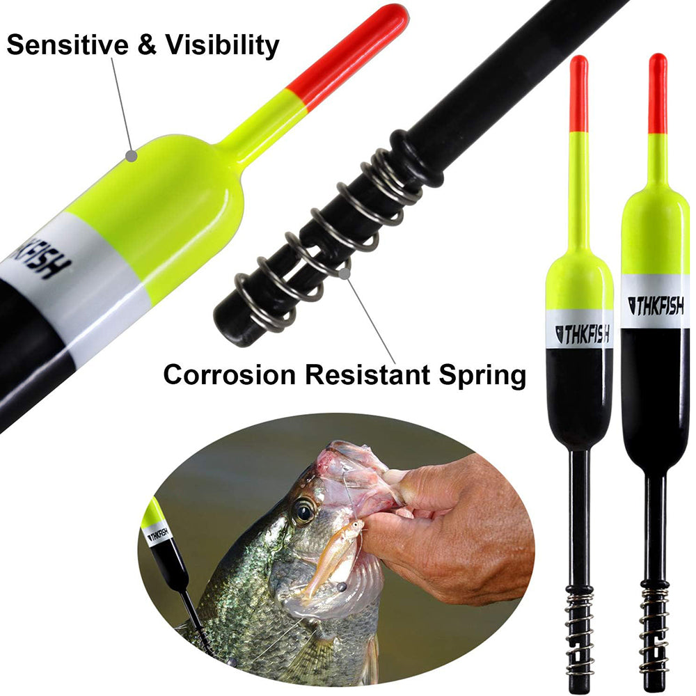 Enhance your fishing experience with the THKFISH Slip and Fixed Fishing Bobbers Floats. Designed for sensitivity and versatility, these fishing bobbers are perfect for a wide range of fishing scenarios. Whether you're targeting crappie, panfish, walleye, bass, or trout, these bobbers ensure your bait is presented naturally and visibly, increasing your chances of a successful catch.