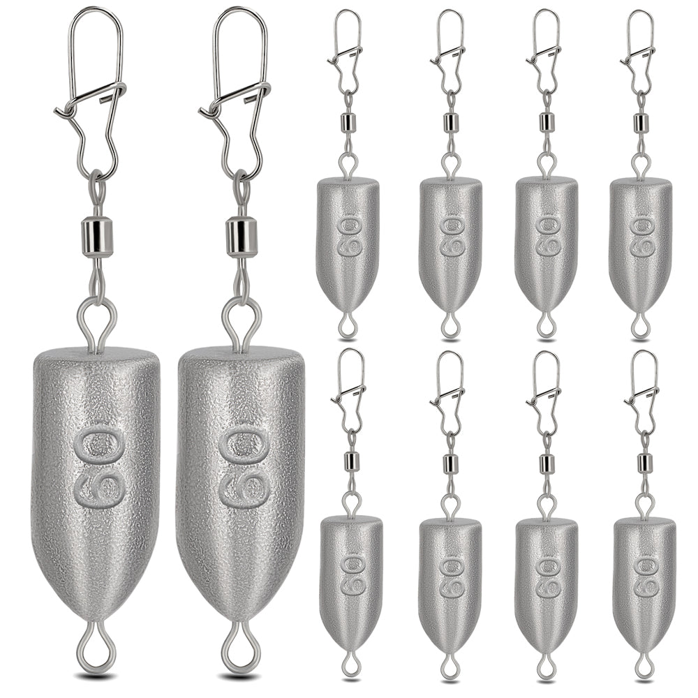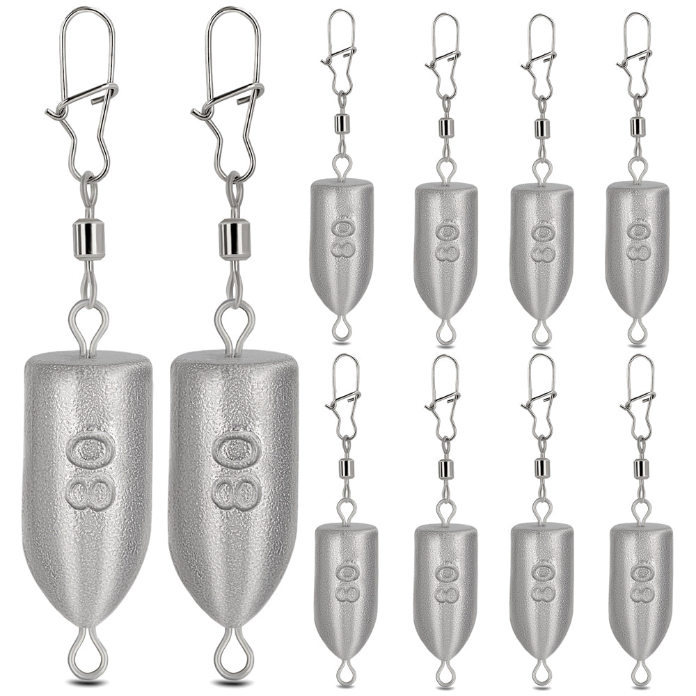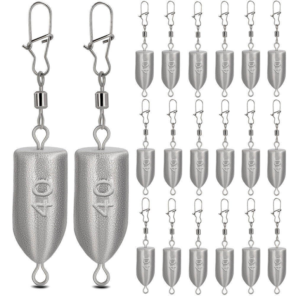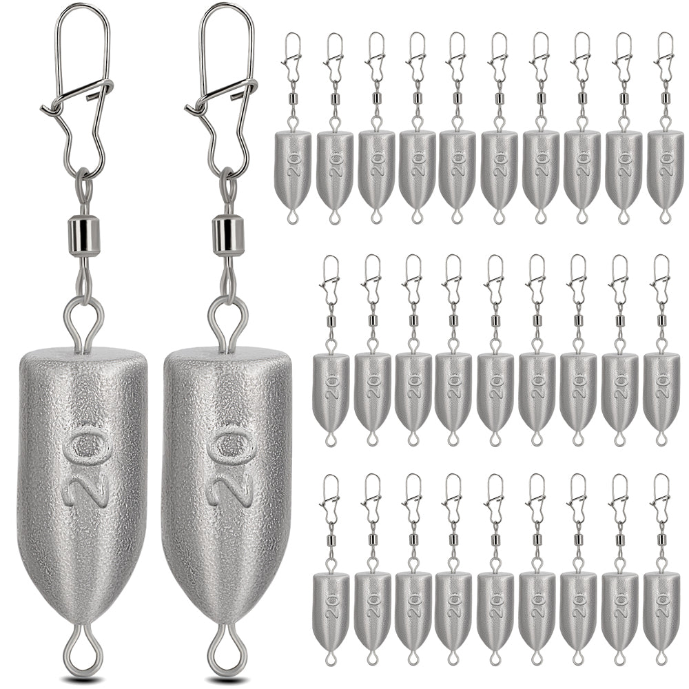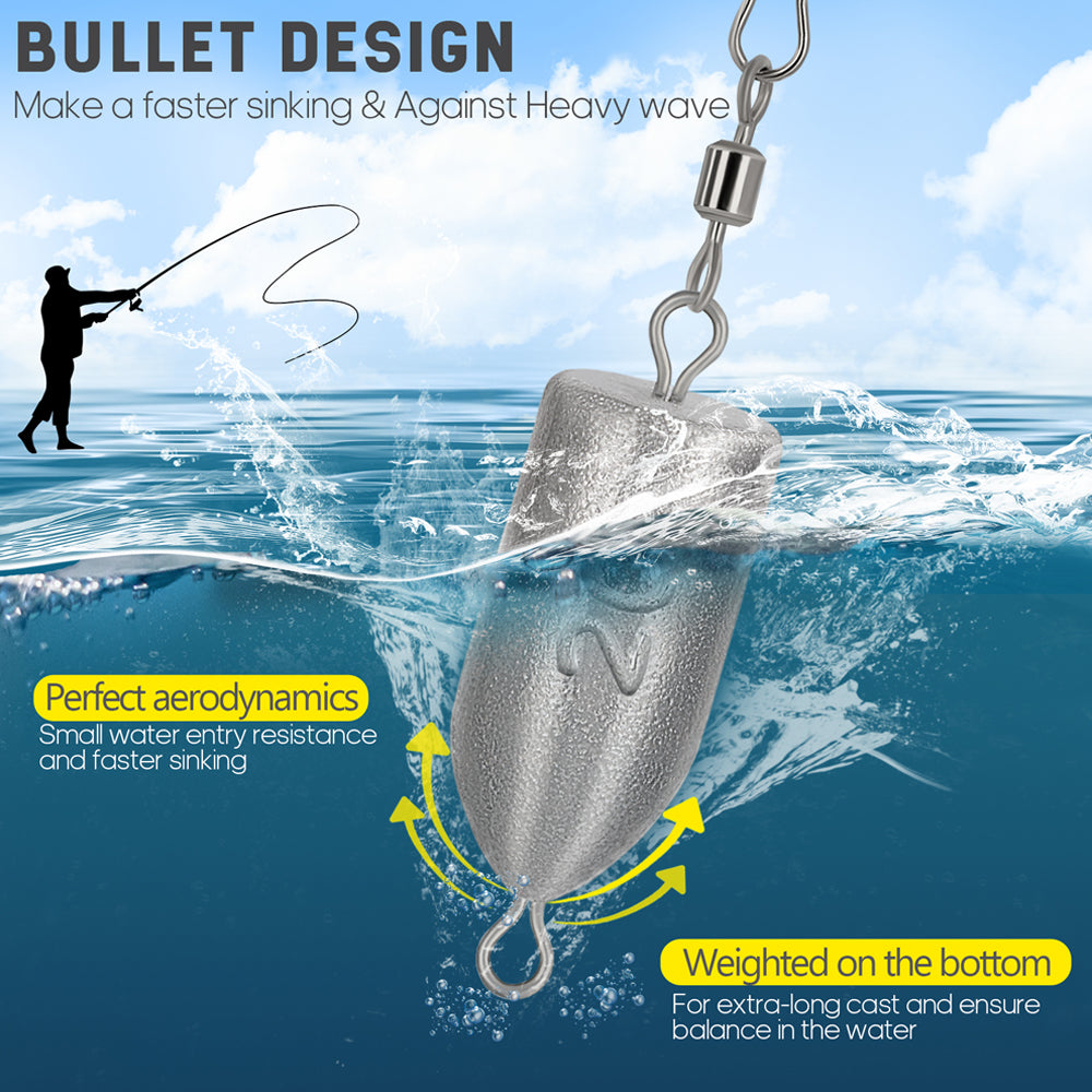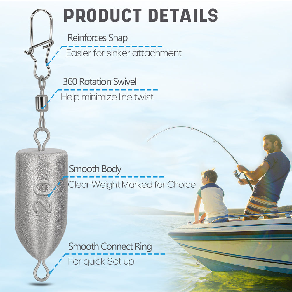 • Snap Weight Rig for Quick Setup: Each bullet weight fishing sinker features a smart swivel head, offering greater movement and flexibility. You can easily connect the sinker with snaps or tie the fishing line directly to the swivel, making these weights perfect for professional anglers.
