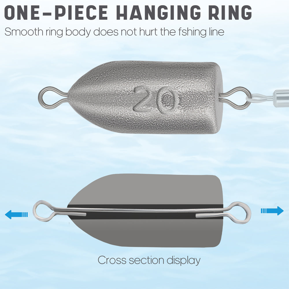 • Smooth Lead Sinkers: The solid lead design ensures these fishing sinkers work well in both saltwater and freshwater. With a polished surface, these sinker weights provide a premium feel and smoother entry, performing efficiently even in heavy currents to get baits down effectively.