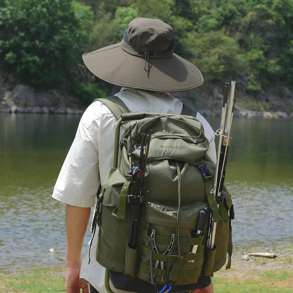 • Fishing Bag with Rod Holders: Equipped with rod holders and adjustable buckle straps, this fishing backpack ensures your rods stay secure. The front straps are perfect for securing and accessing your fishing gear, while an adjustable elastic cord at the top offers extra storage for tackle boxes. This feature-rich fishing bag makes organizing your gear easy and efficient.