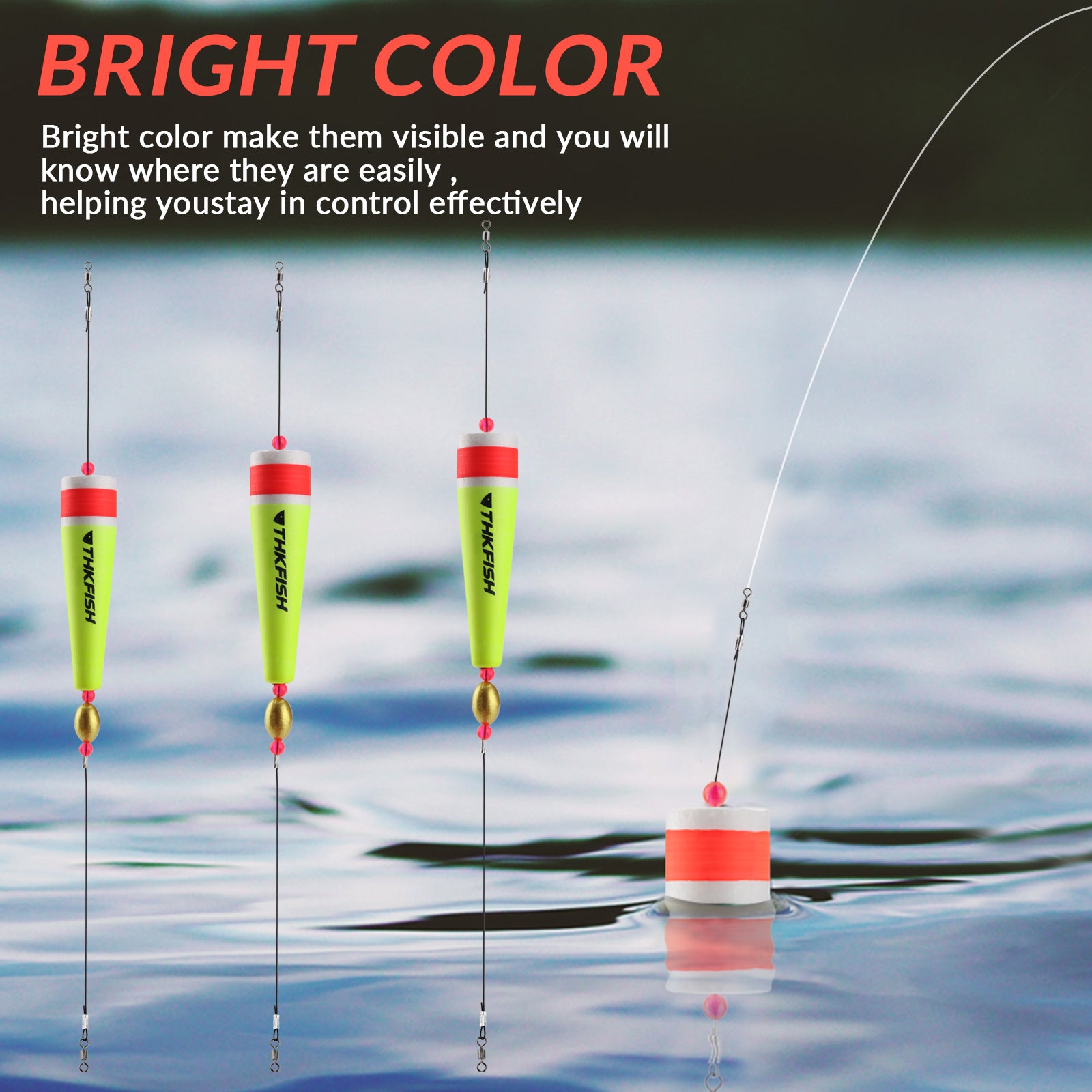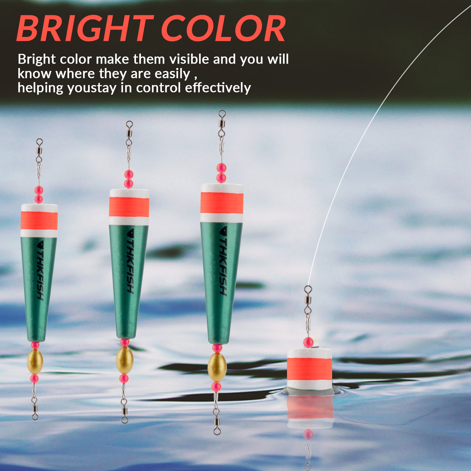 Experience enhanced fishing performance with THKFISH 4PCS Weighted Fishing Bobbers. These innovative bobbers are designed to take your fishing game to the next level with their sound-producing float, 360° flexible rotation, high visibility, and durability. Whether you're a seasoned angler or a beginner, these bobbers are a must-have addition to your fishing gear.