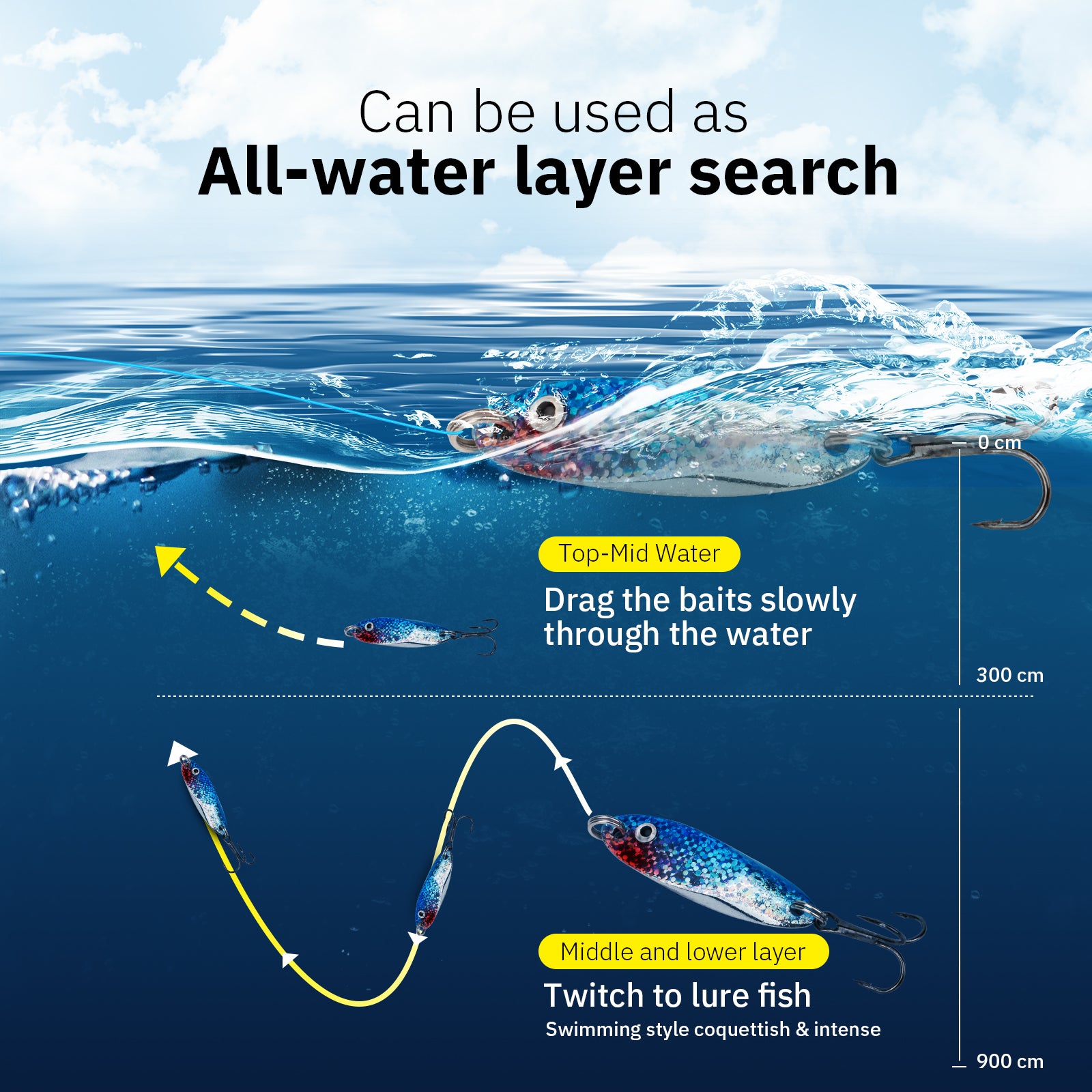 Unique Angles: The Fishing Spoons feature a unique cut and precise distribution of the center of gravity, resulting in a distinctive side-to-side action that perfectly mimics baitfish. Whether casting, trolling, or jigging, these spoons are highly effective at attracting predator fish.