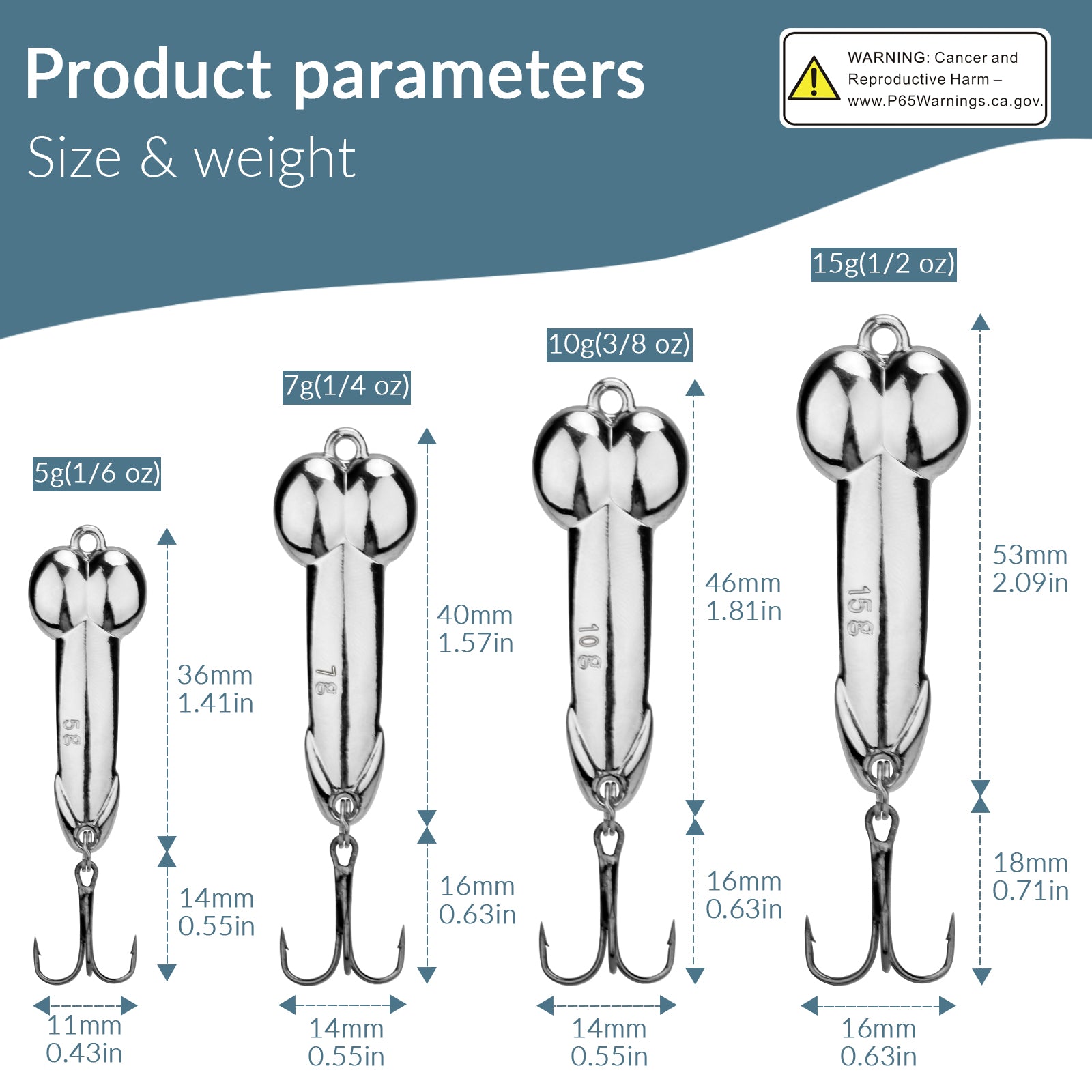 | Size | 1/8oz, 1/5oz, 1/4oz, 3/8oz, 1/2oz, 3/4oz |