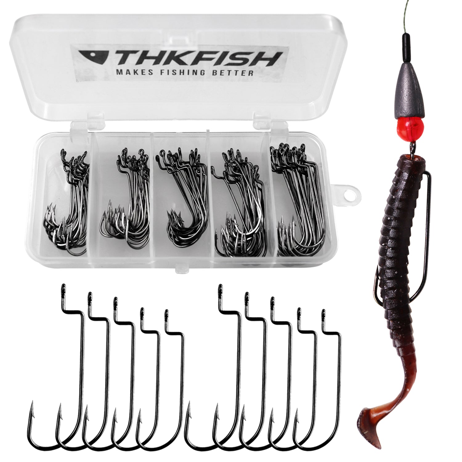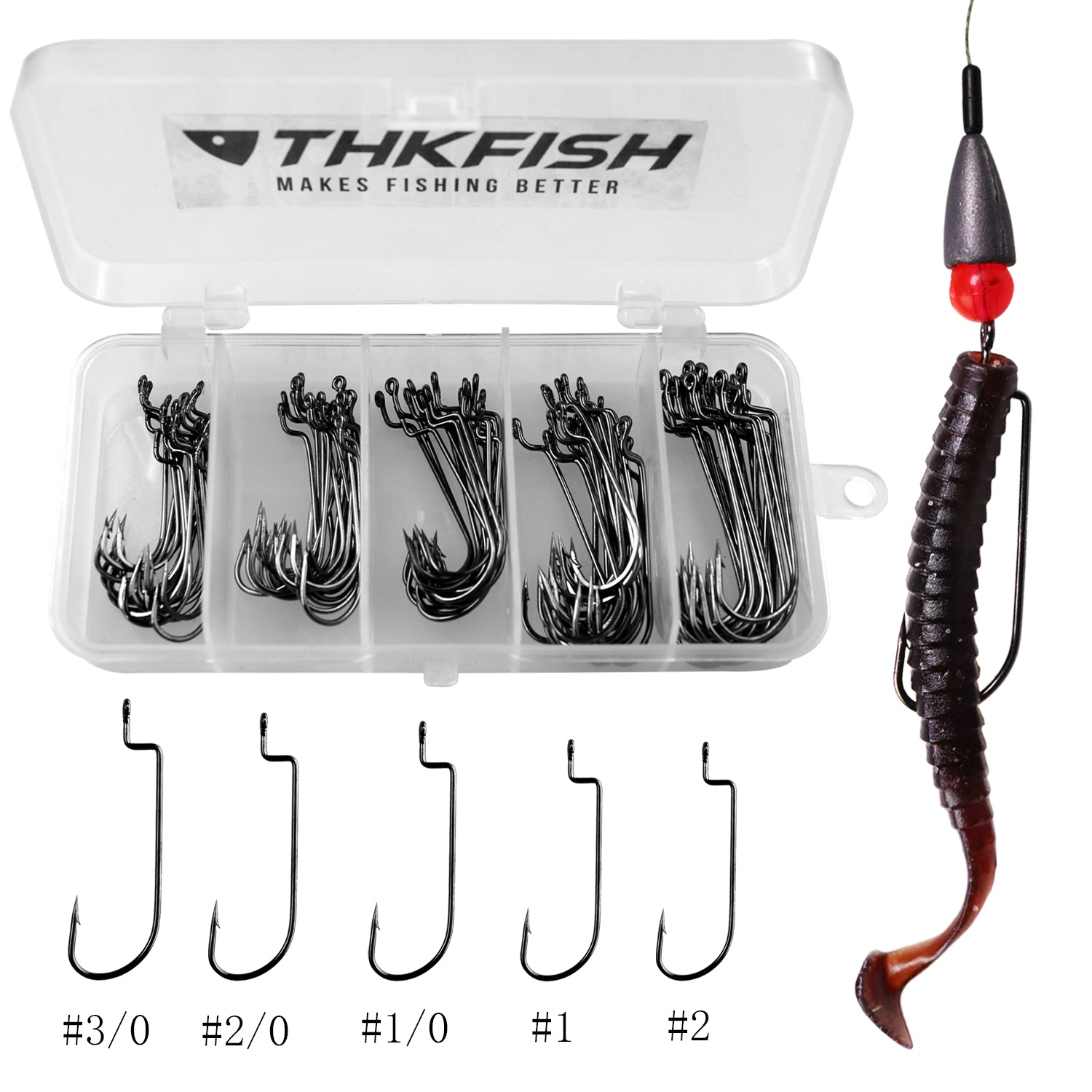 THKFISH 100PCS/50PCS Offset Worm Fishing Hooks