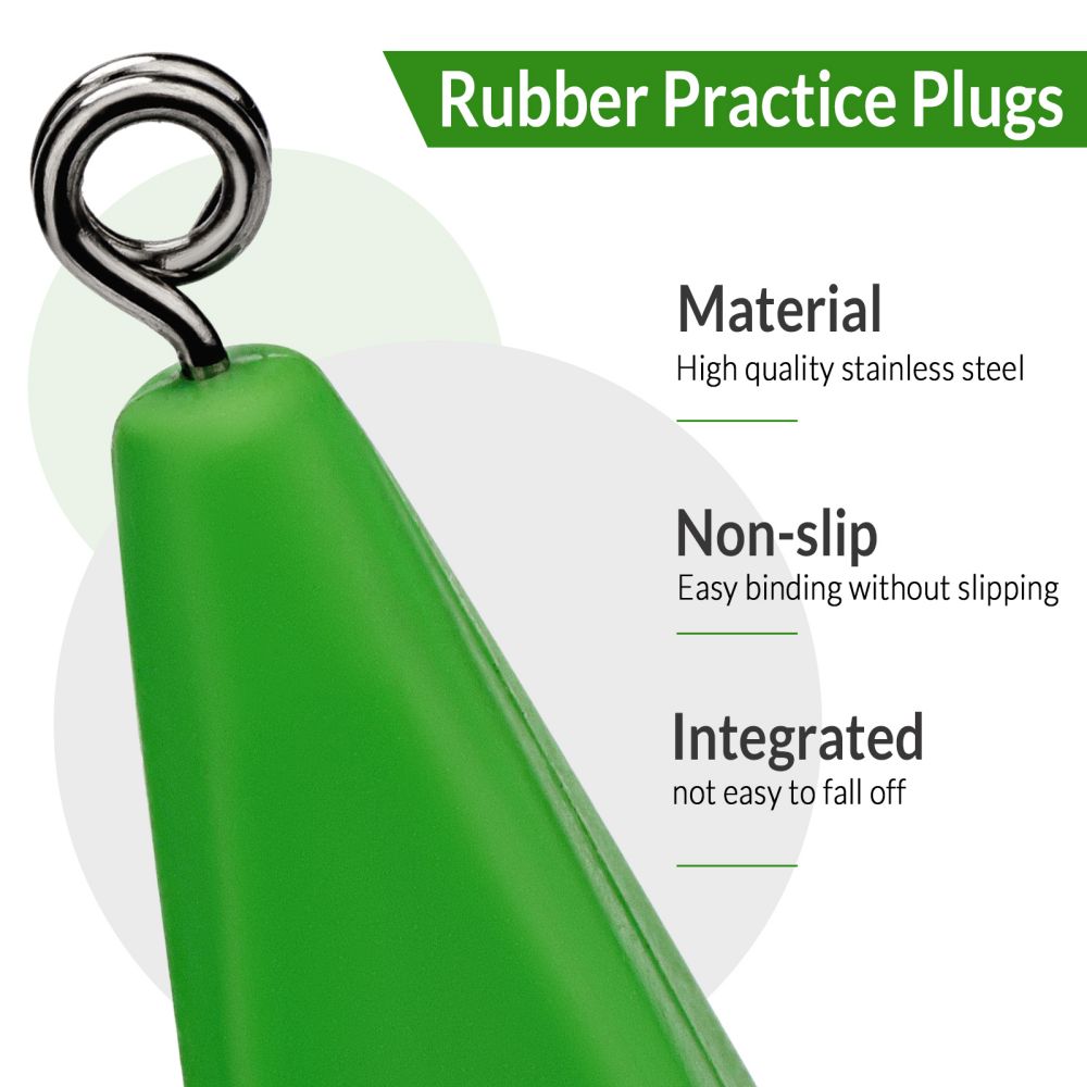Durable and Wear-Resistant: Made from solid, durable hard rubber, these practice plugs are built to last. The flat bottom design reduces friction with the ground, allowing for quick retrieval and efficient practice sessions. Stainless steel tie rings enhance durability, solving the problem of easily broken plastic rings.