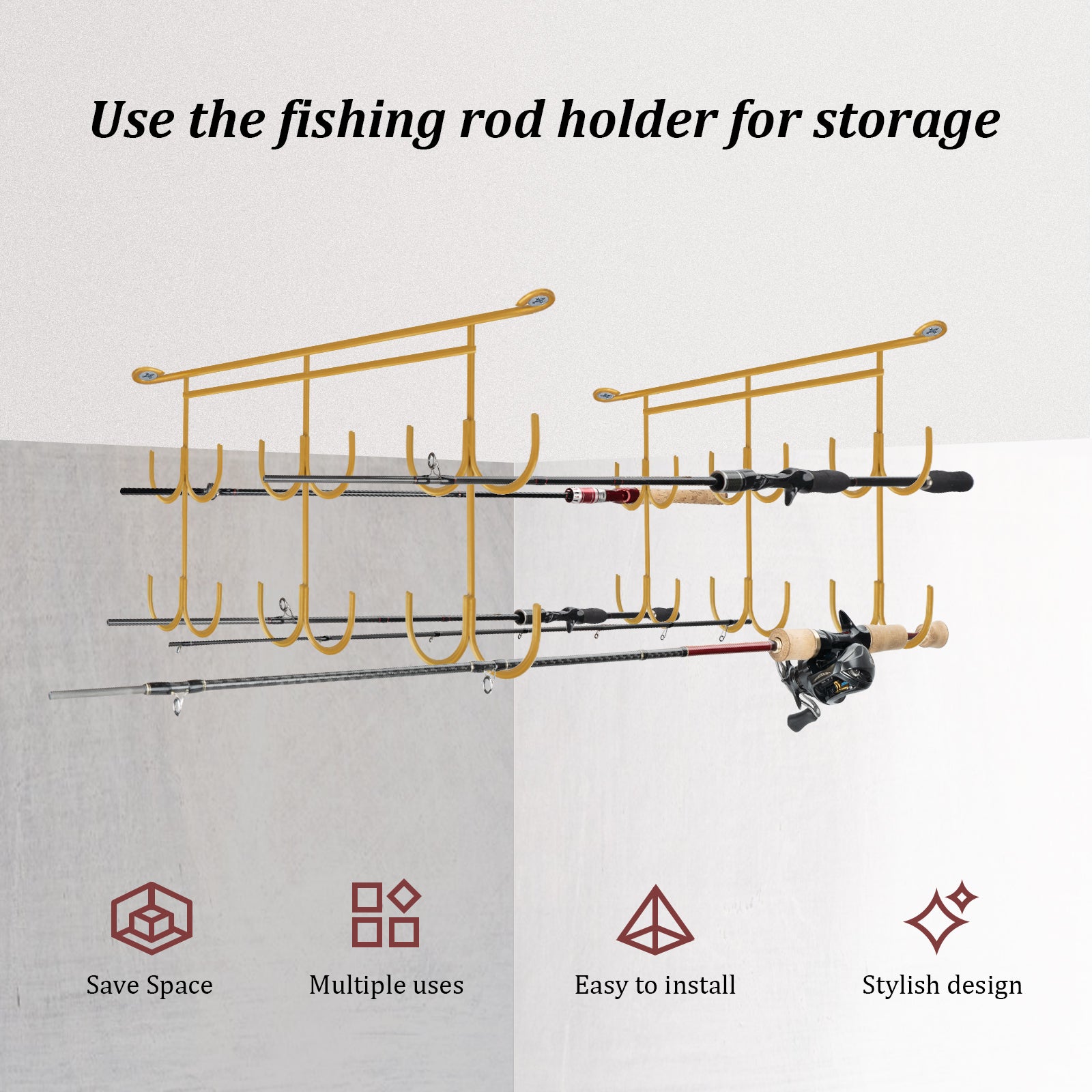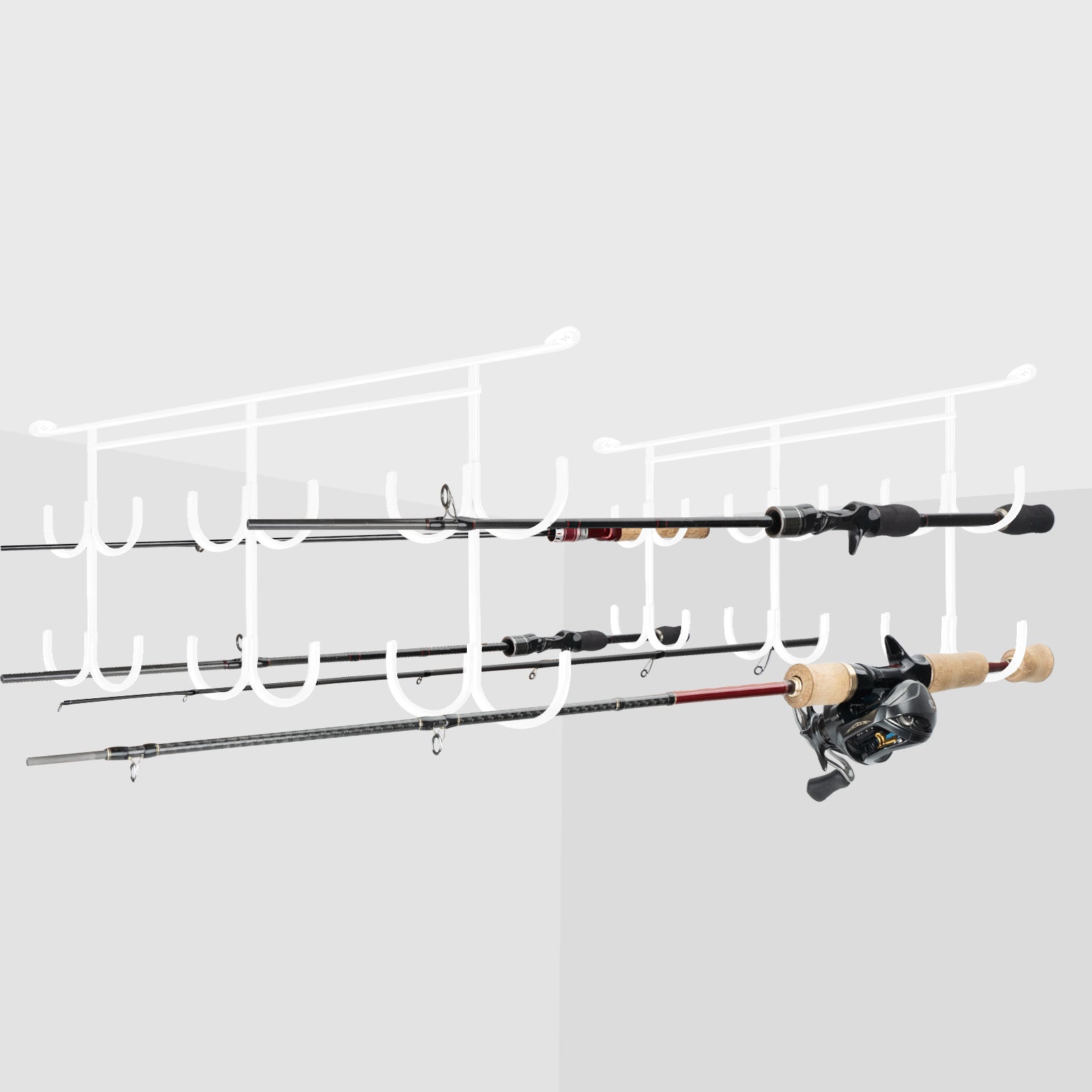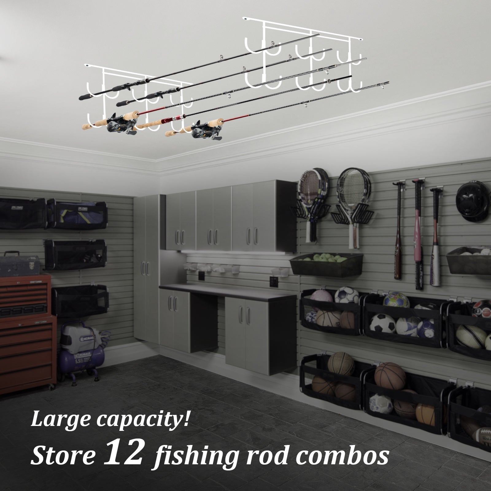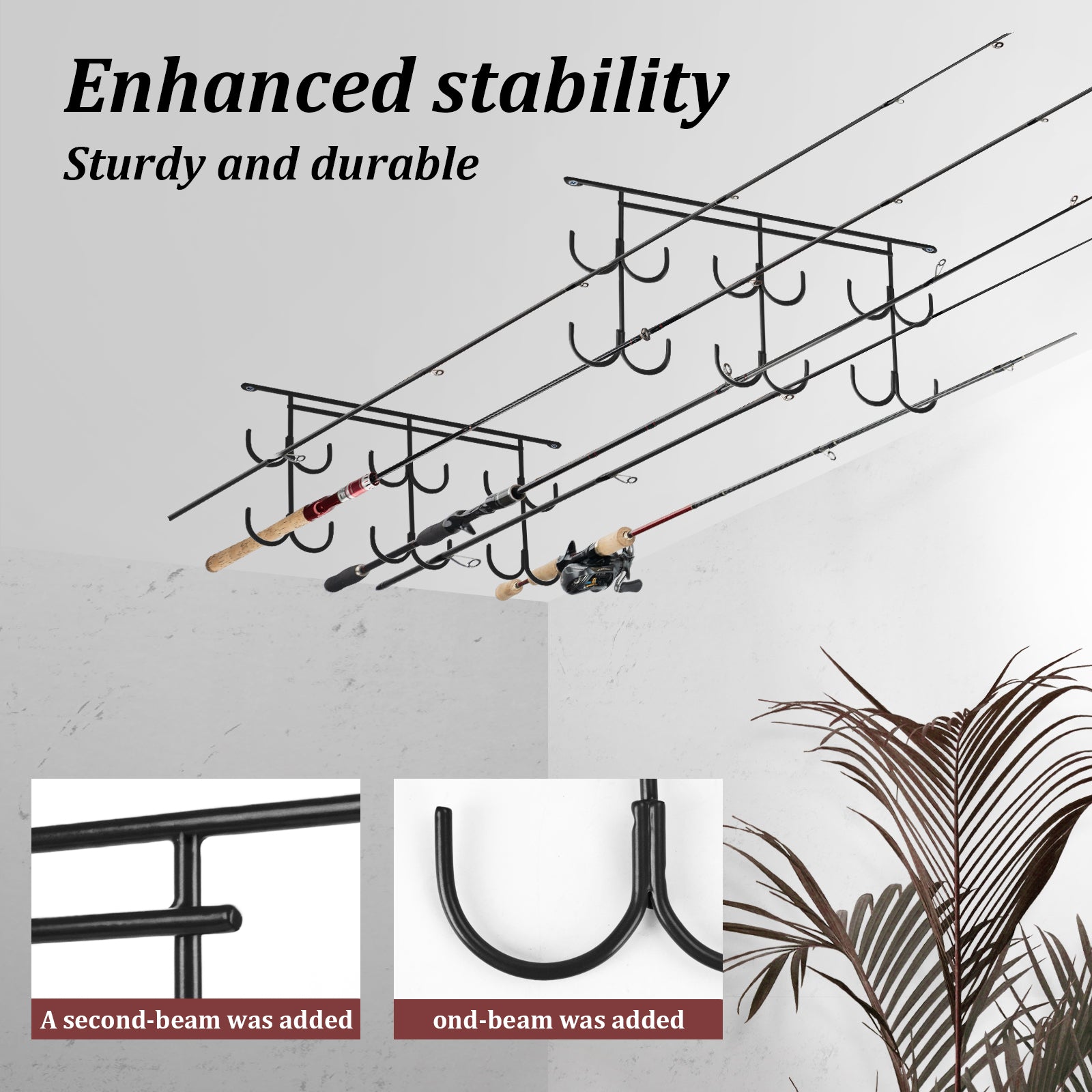 - Upgraded Ceiling Storage: The rod rack features an upgraded hook size of 1.8", accommodating larger fishing rods and making storage more convenient. Mount it on the ceiling to utilize unused space and keep your fishing rods organized and easily accessible.
