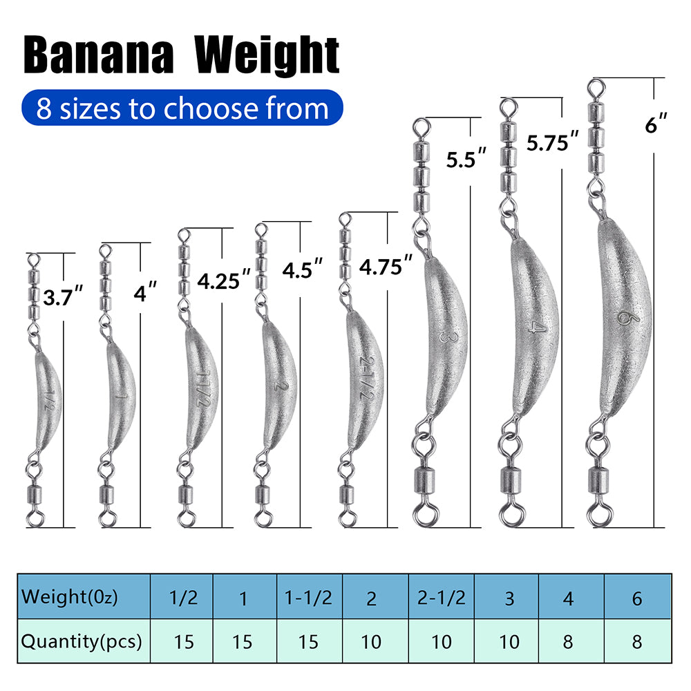 - Clear Weight Display: The weight of each sinker is clearly marked, allowing for quick and easy identification. This feature ensures you can select the appropriate weight for your fishing setup efficiently.