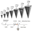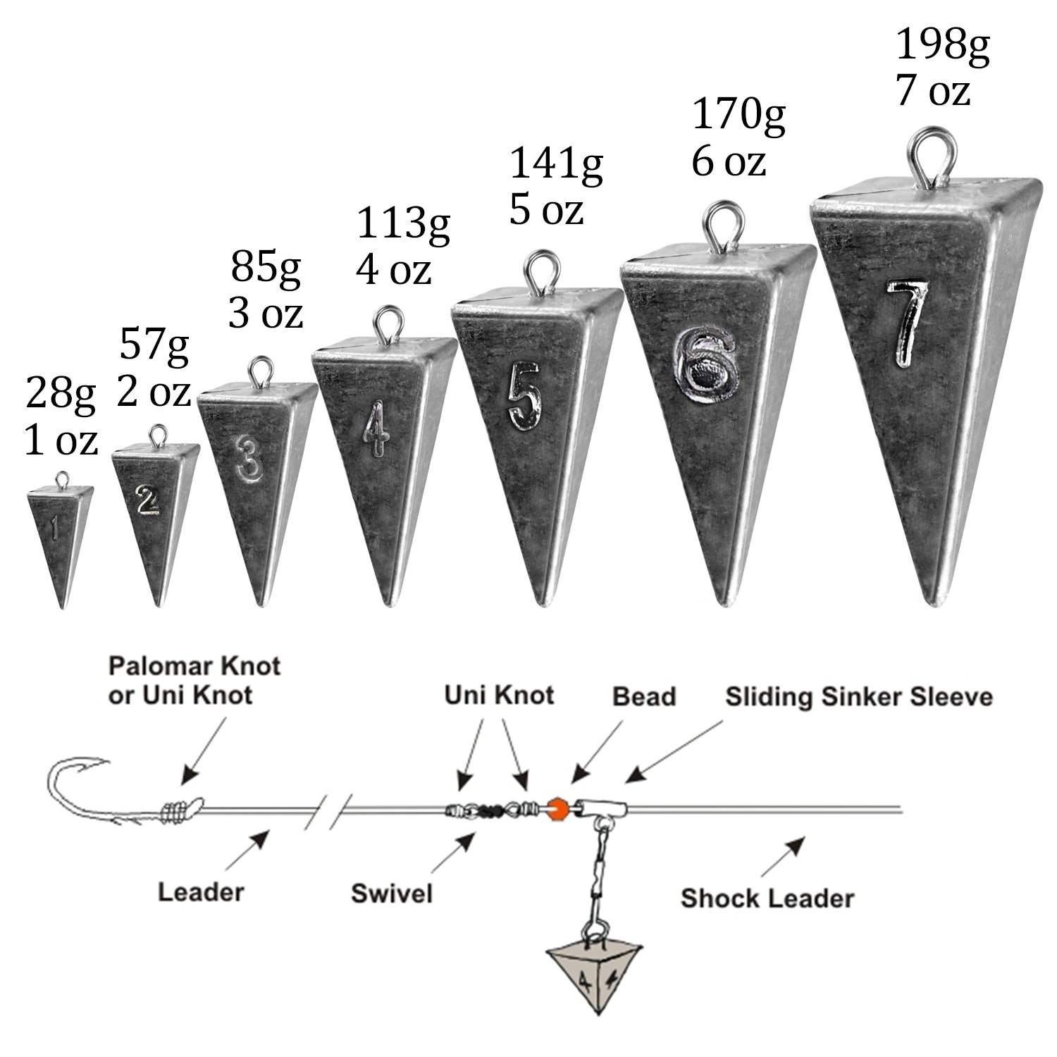 Multiple Sizes: Available in a range of sizes including 1oz, 2oz, 3oz, 4oz, 5oz, and 7oz, each package contains multiple pieces to meet various fishing needs based on current strength and bait weight.