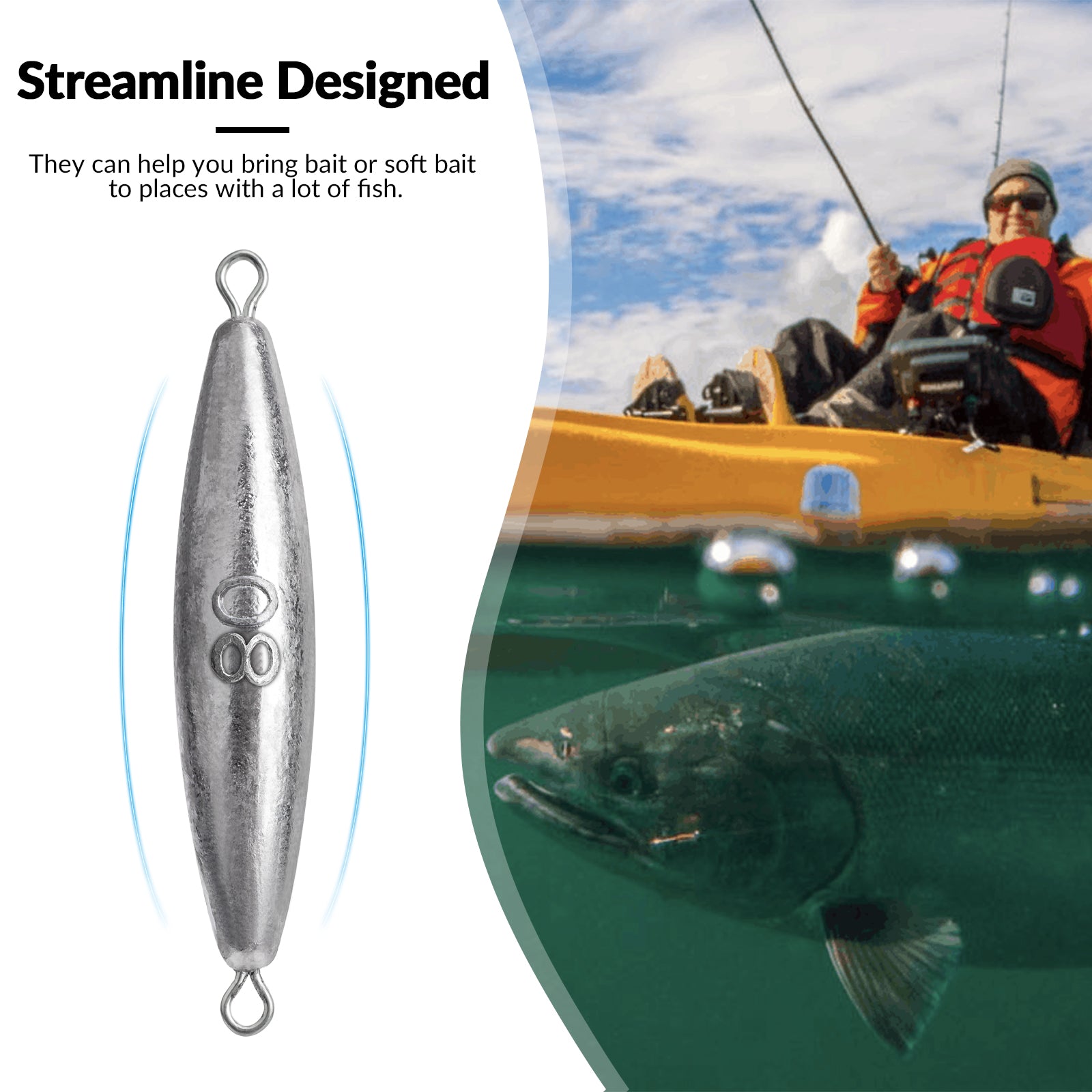 Effective Tor-pedo Design: The streamlined shape reduces resistance, delivering your bait swiftly to big fish without getting stuck in rocks.