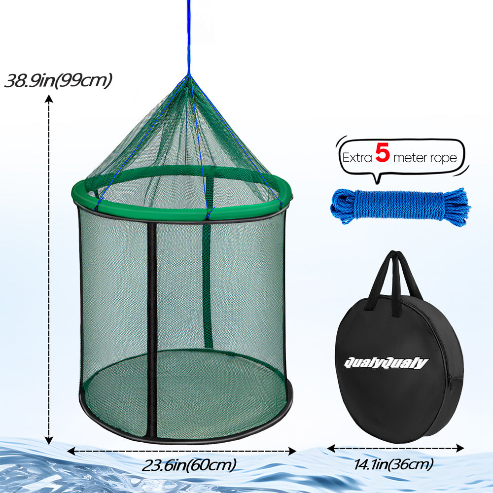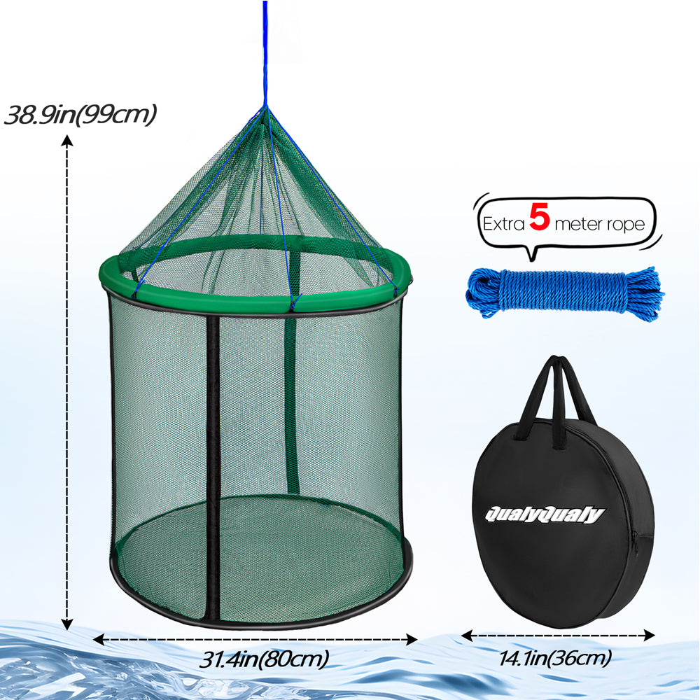 - Large & Secure: Available in two sizes, 23.6” (large) and 31.4” (extra large) in diameter, our fish basket offers ample space to store your catch. The drawstring closure ensures your fish remain secure during fishing and transportation.