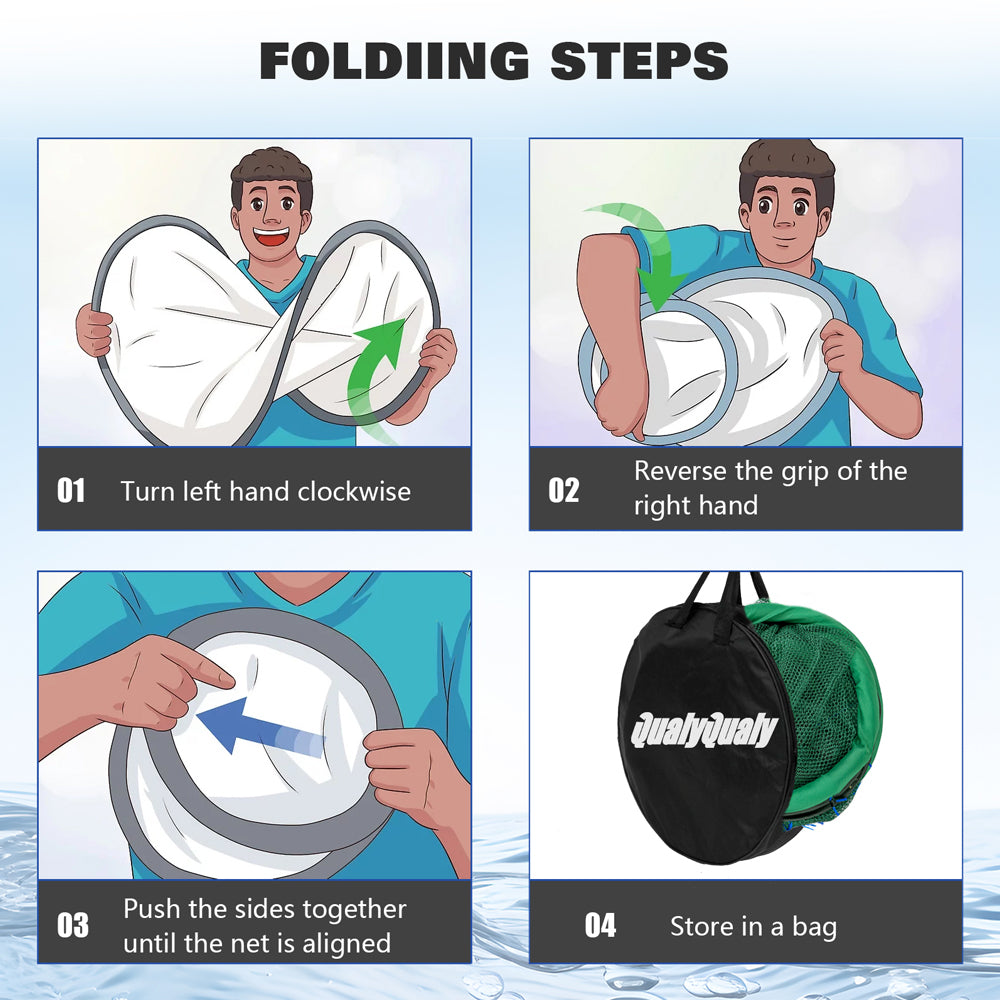- Fully Foldable Design: The elastic steel upper and lower rings allow the basket to fold down to a compact 14” diameter, making it easy to carry and store. It includes a convenient carry bag for added portability and space-saving storage.