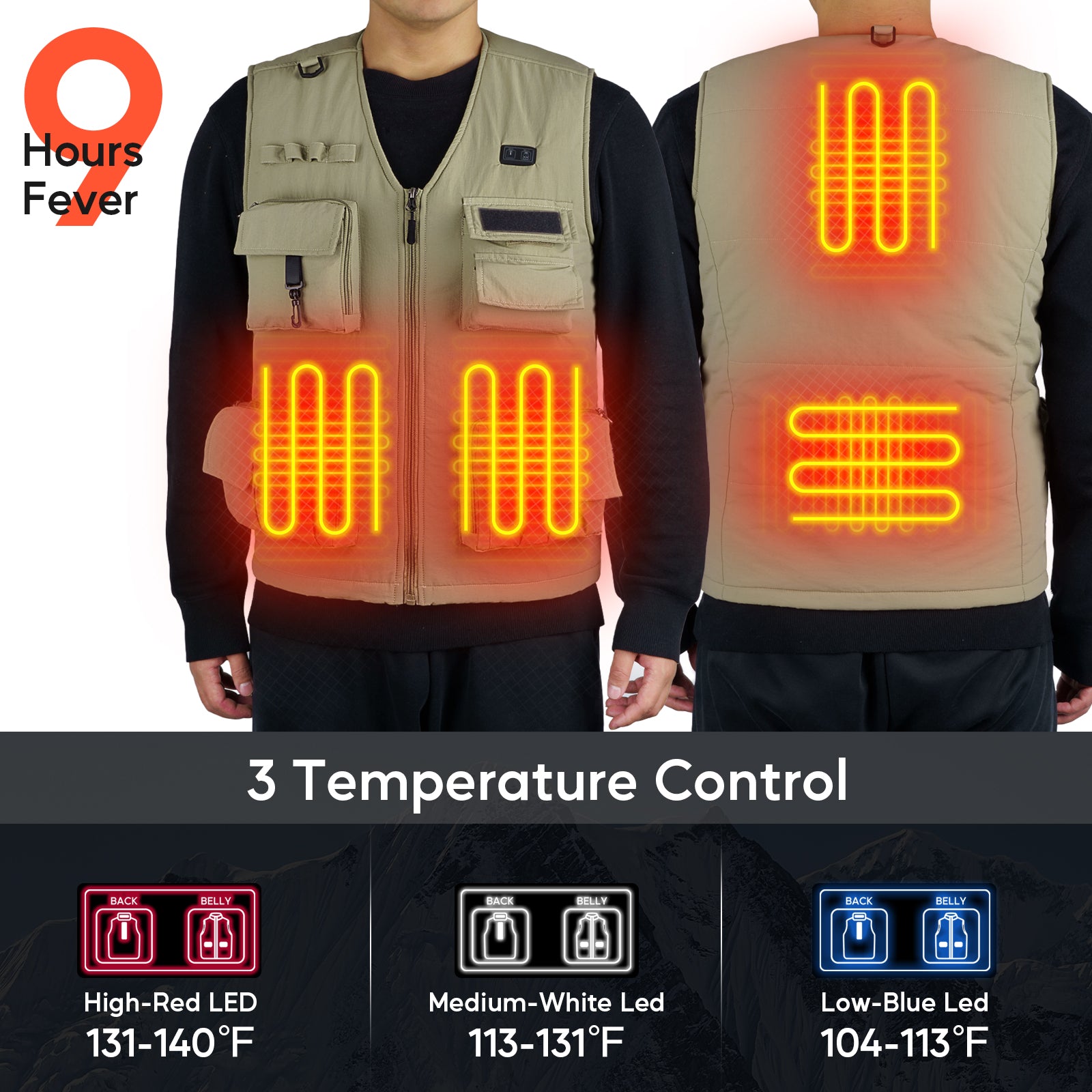 - 【3 Temperature Keep You Toasty】The heated outdoor youth fishing vest Built-in 4 carbon fiber heating elements with 3 temperature levels (High - 131℉, Medium - 113℉, Low - 95℉) can be adjusted with just a simple press of the button to customize your comfort, automatic heating mode generates constant heat for core body parts such as the back, abdomen and lumbar area, which helps to keep your body warm, improves blood circulation and relieves musc.