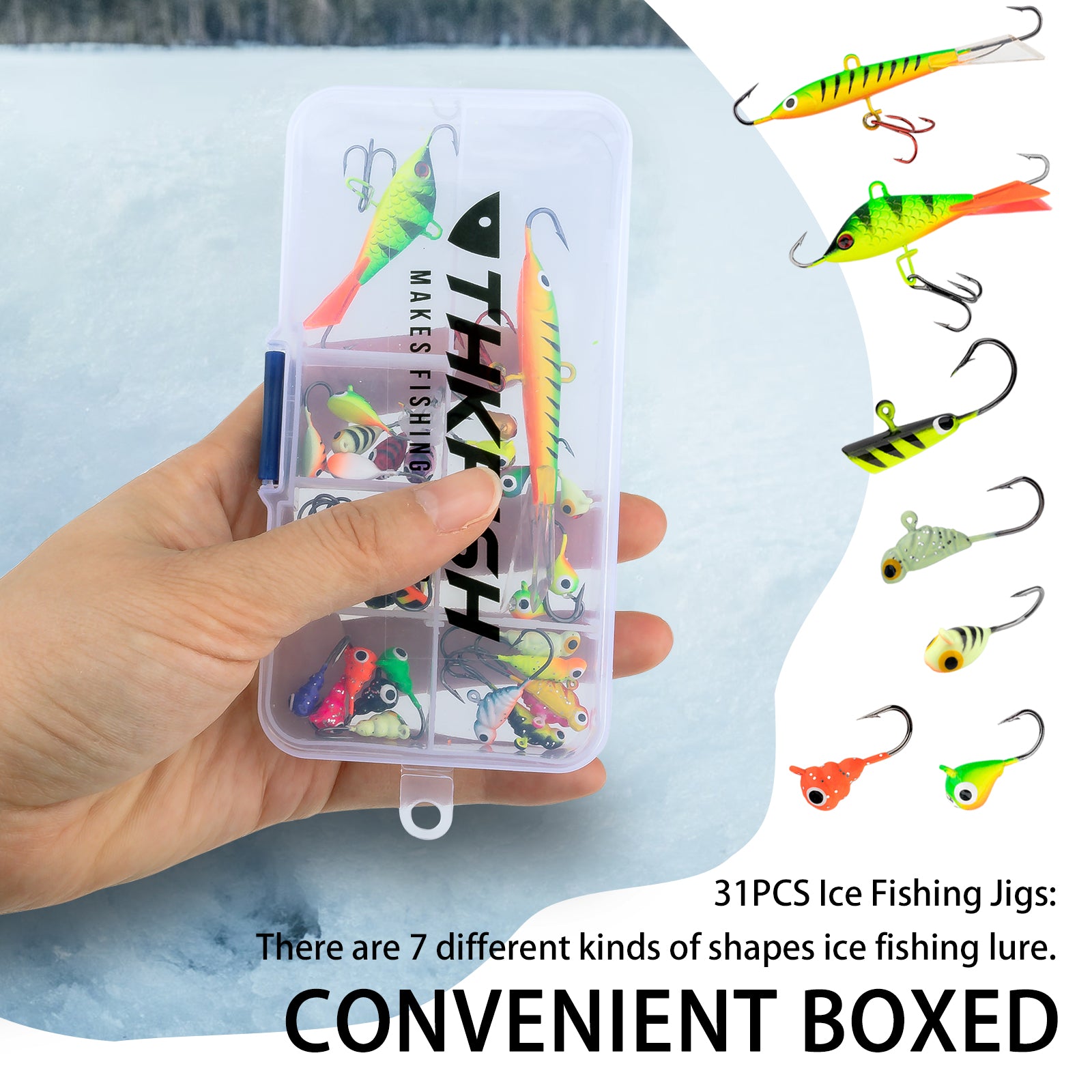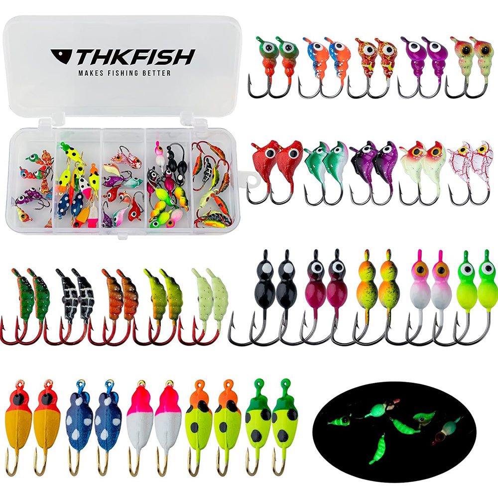 THKFISH 50PCS/31PCS Ice Fishing Jigs Heads Jigs Kit
