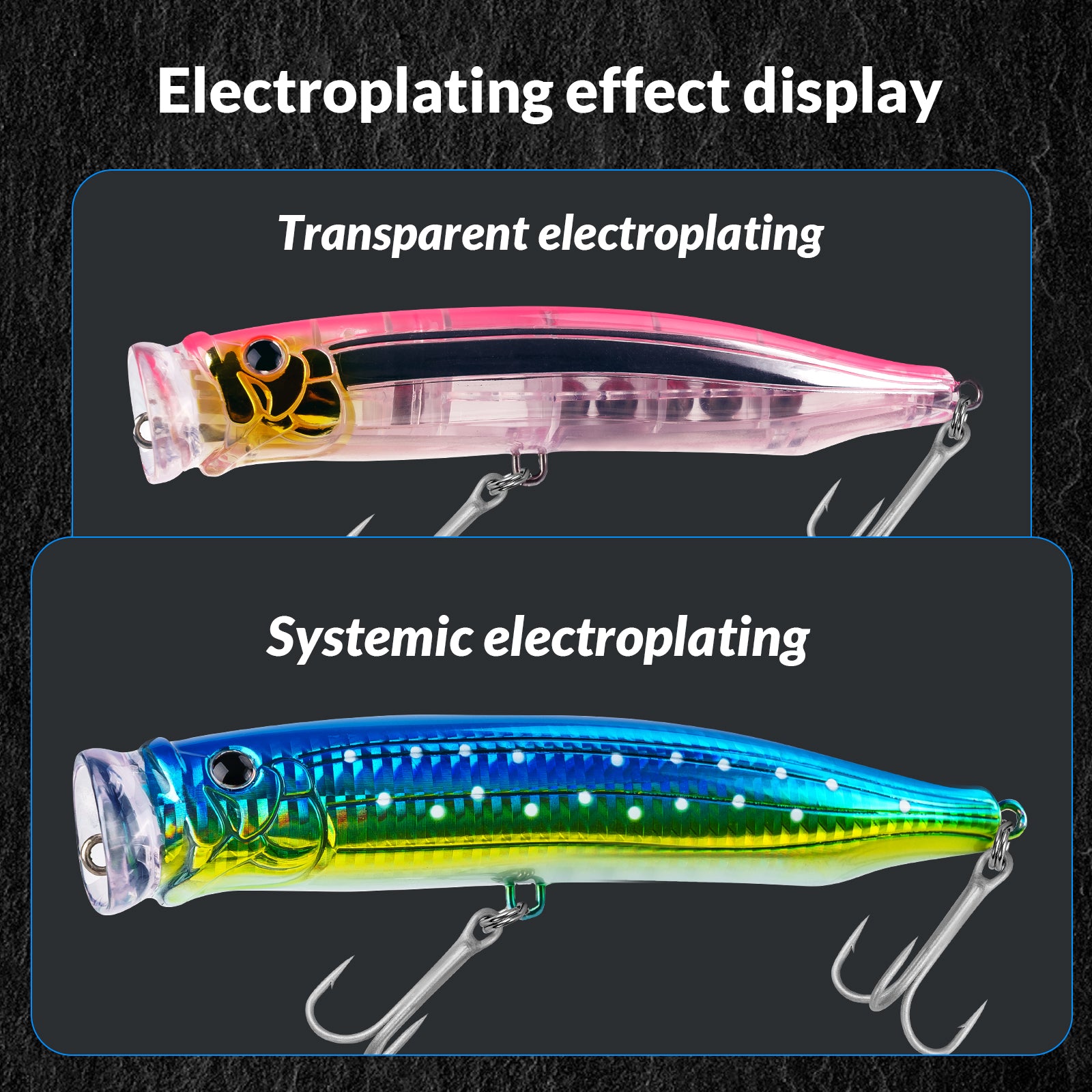 Attractive Fish Appearance: The popper lures feature a seductive appearance with top-quality plated layers, multi-angle reflections, brilliant colors, and realistic 3D simulation eyes.