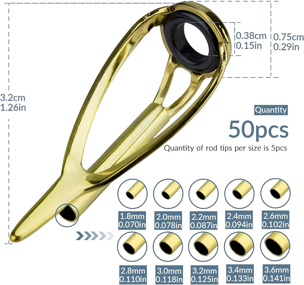 Premium Quality: The rod tips are treated with an electroplating process for anti-rust and corrosion resistance, enhancing their durability and longevity. Crafted with high-quality ceramics, these tips are slick and shiny, reducing the chance of damage to your fishing line and minimizing premature wear.