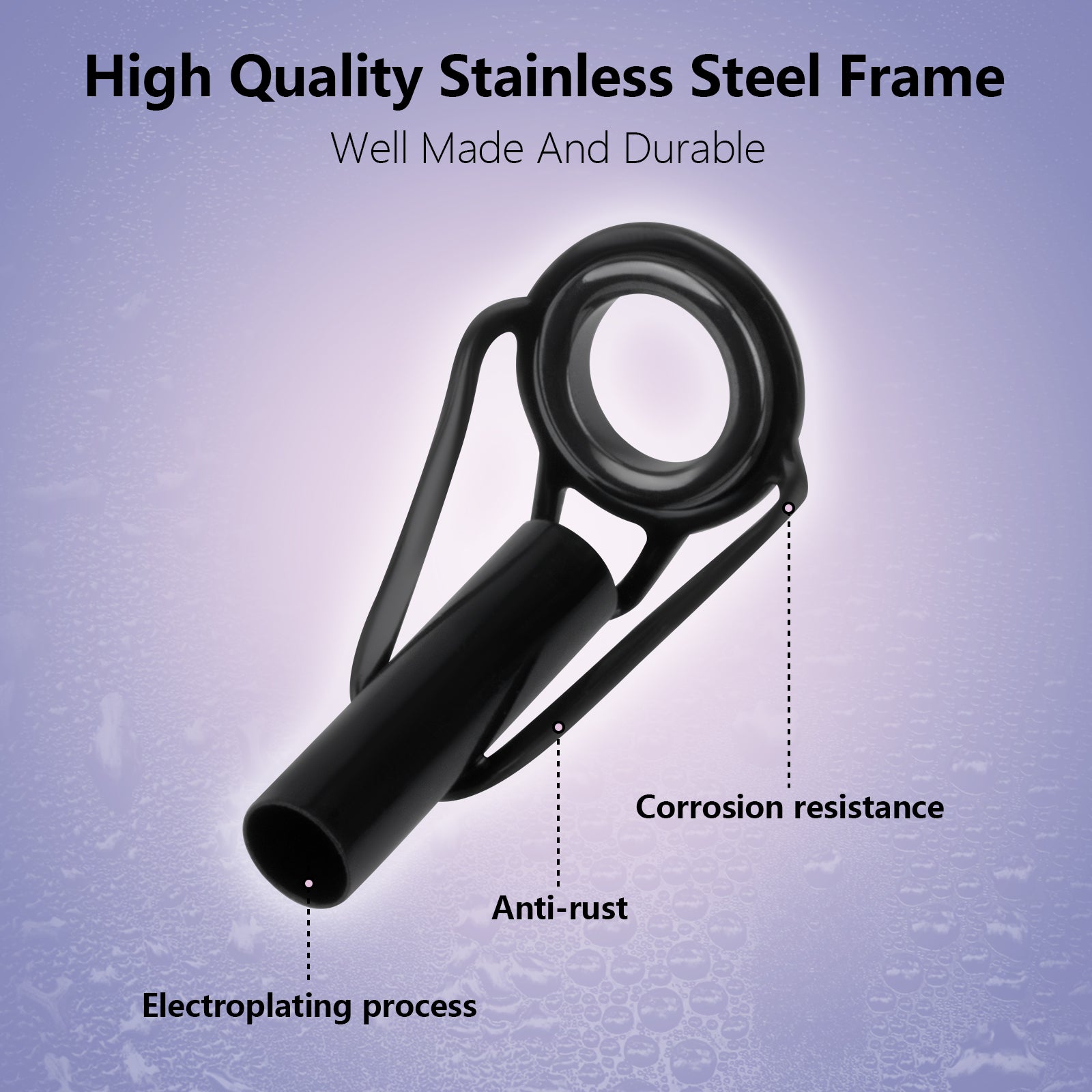 Lightweight and Tangle-Resistant: With a lightweight design and tangle-resistant, flared frame, this repair kit is suitable for all kinds of fishing rods. The smoothest rod guides reduce friction, heat, and line slap, significantly reducing the chance of damage to your fishing line. Compatible with fluorocarbon, monofilament, and braided lines.