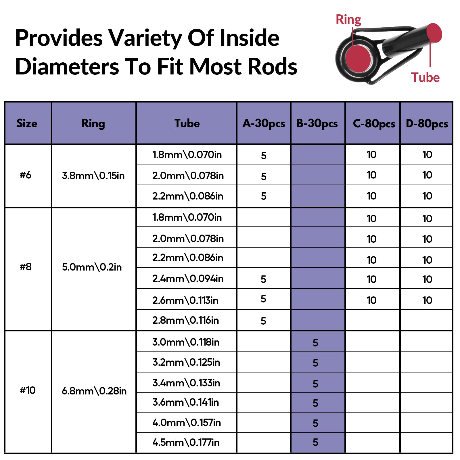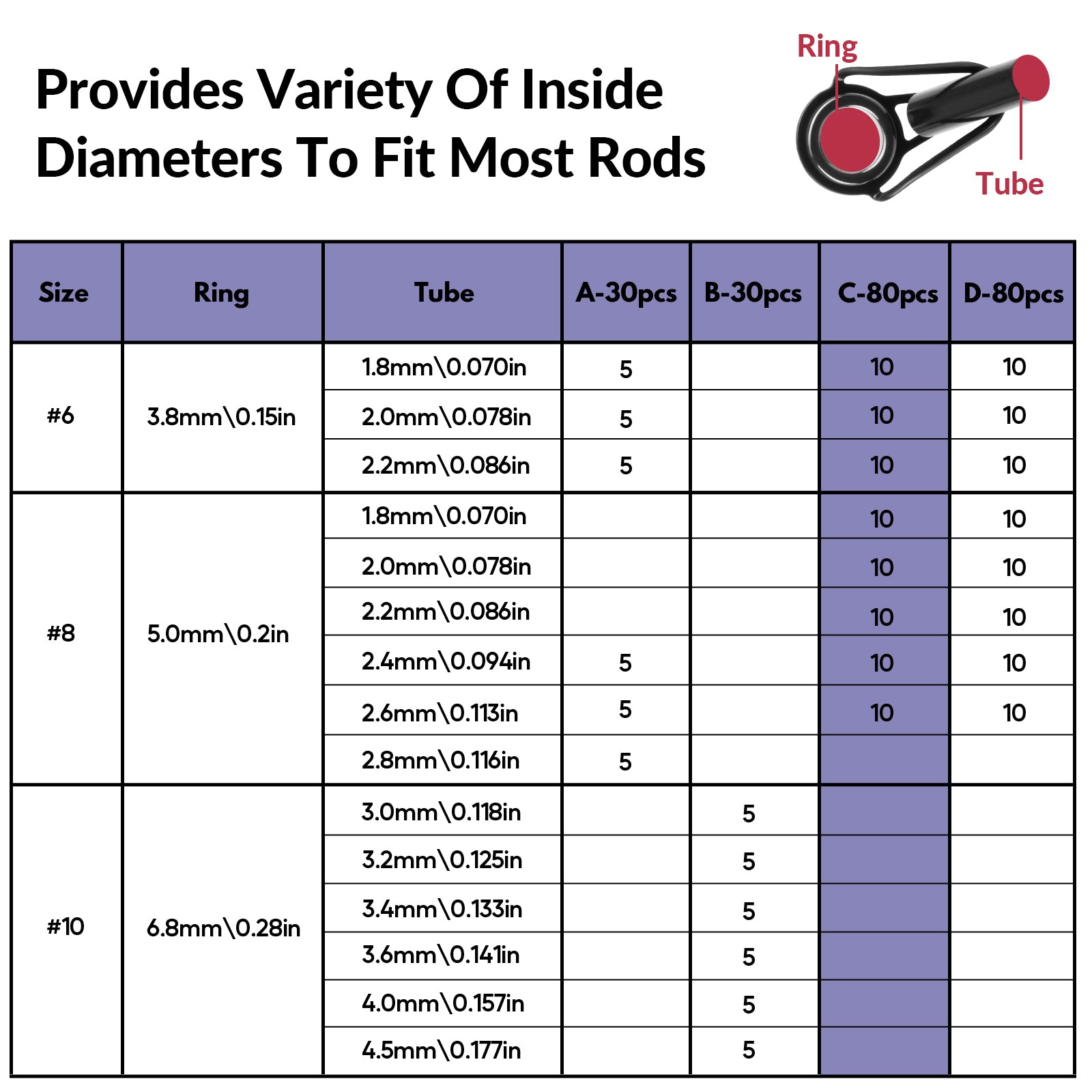 Multiple Sizes: The kit includes a wide selection of rod tips to fit various rod sizes. With inner diameters ranging from 0.12in to 0.17in, you can easily find the right size to repair or modify your fishing rod, ensuring a perfect fit and optimal performance.
