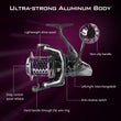 Ultra-Strong Aluminum Body: Corrosion-resistant CNC-machined aluminum frame designed to withstand harsh surf fishing conditions.