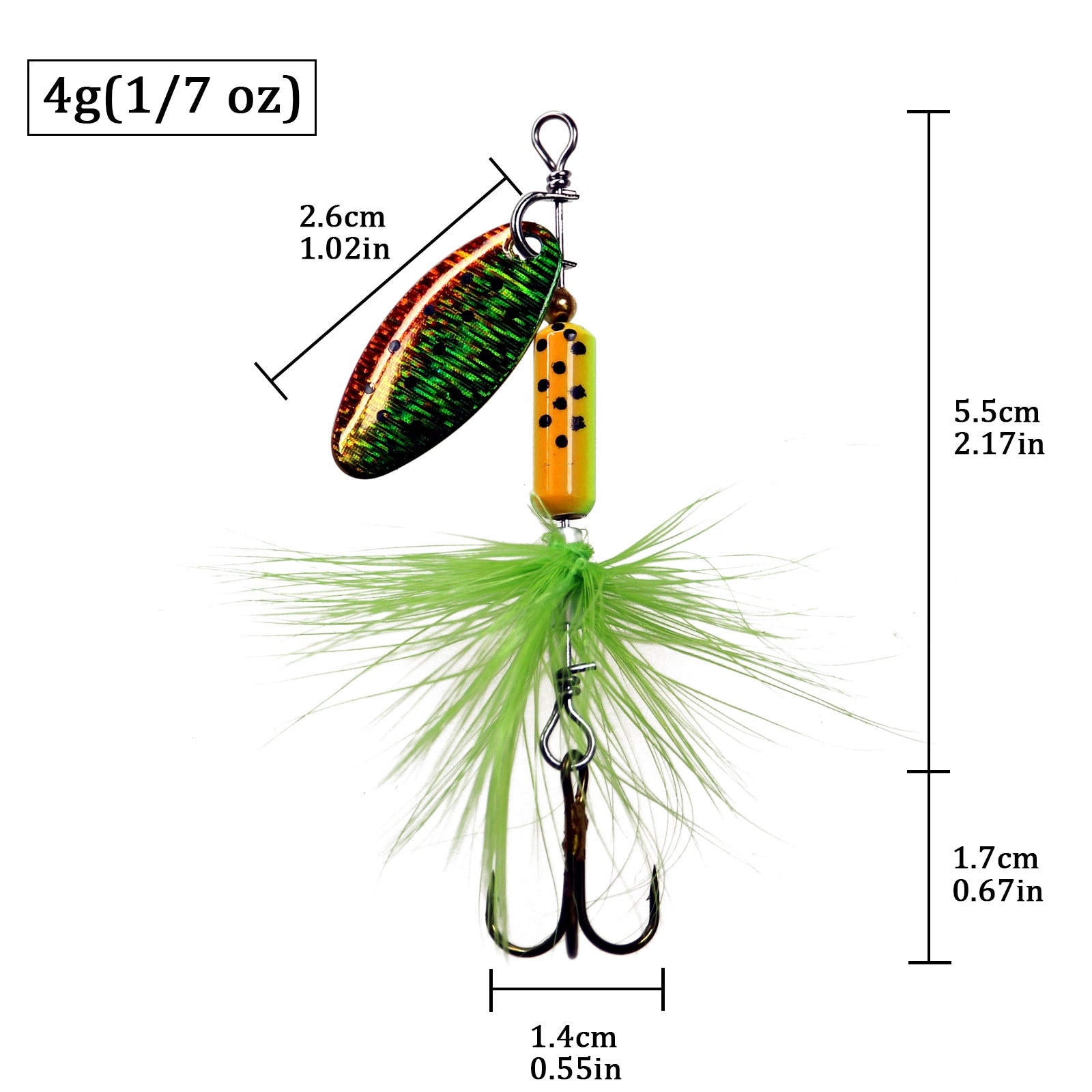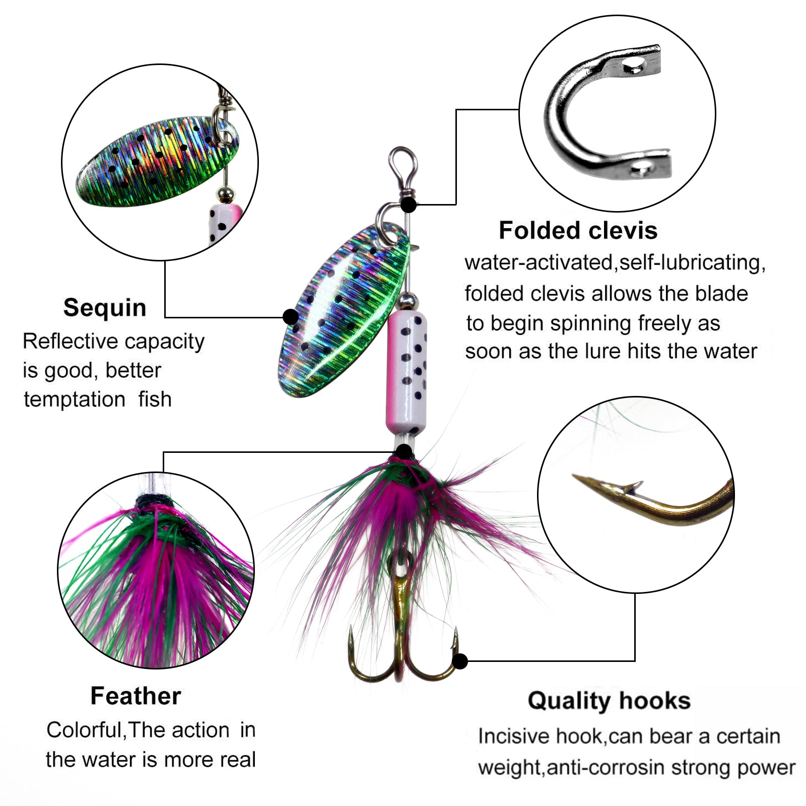 Premium Fishing Blade: Equipped with a premium blade and clevis, ensuring smooth-running performance underwater. The spin design allows the blade to freely rotate, providing continuous flash and vibration to attract fish.