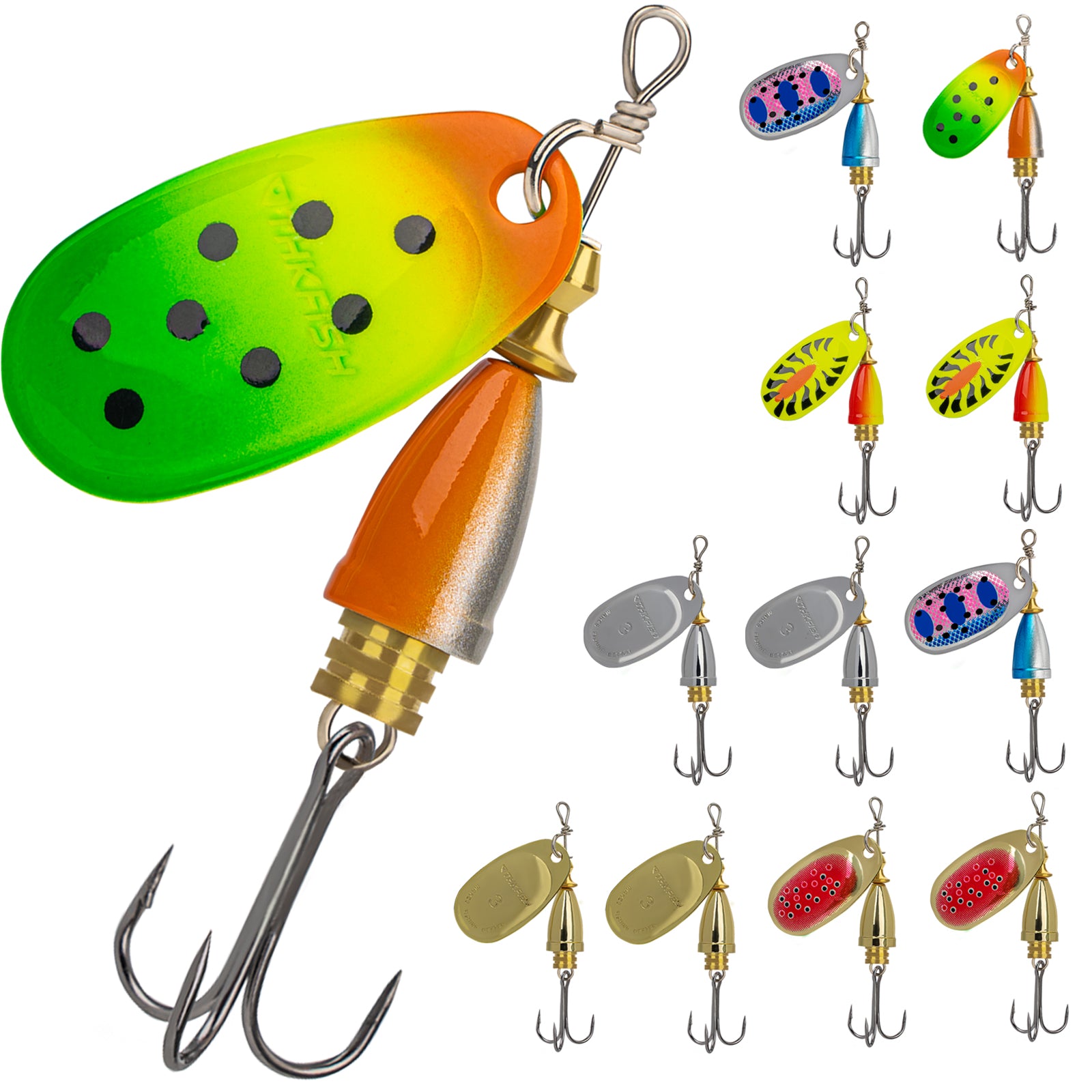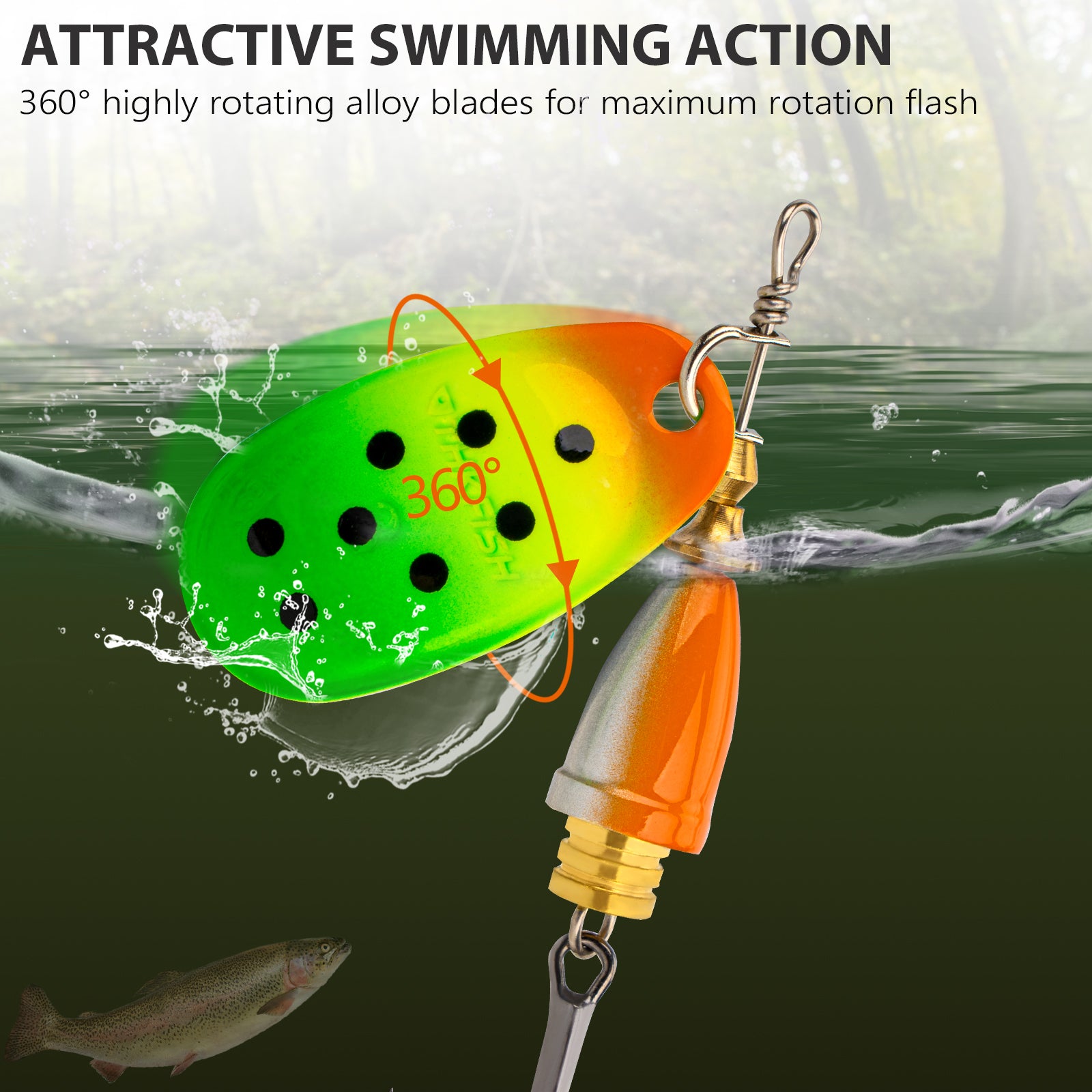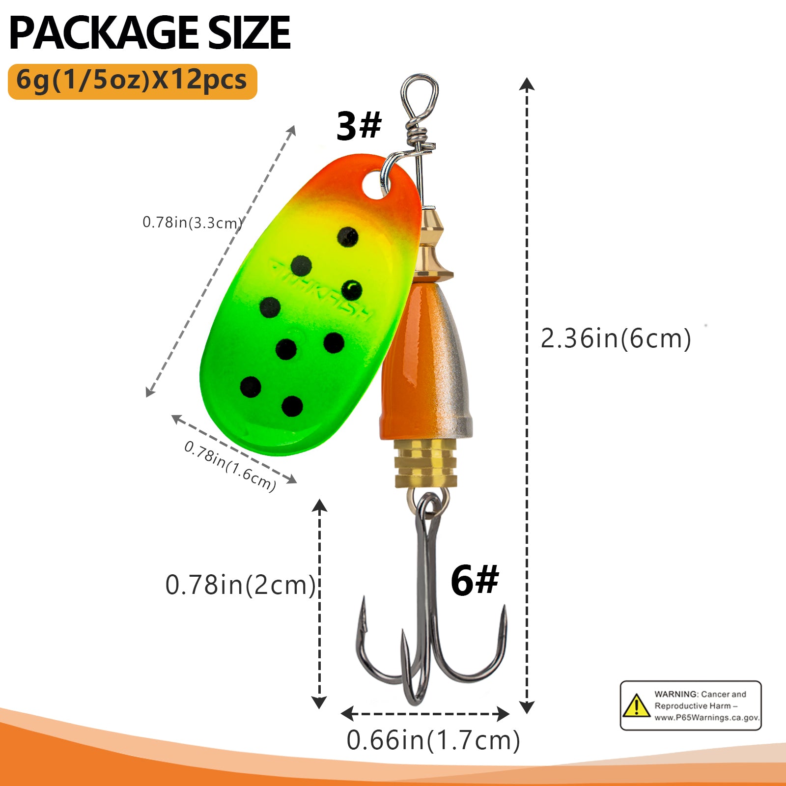 - Longer Service Life: Built with durability in mind, these spinner lures feature a brass bell, nickel-plated hook, and high-strength body wire that resists rust and bending. This construction ensures the lures remain sharp and effective even in harsh environments, providing long-lasting performance.