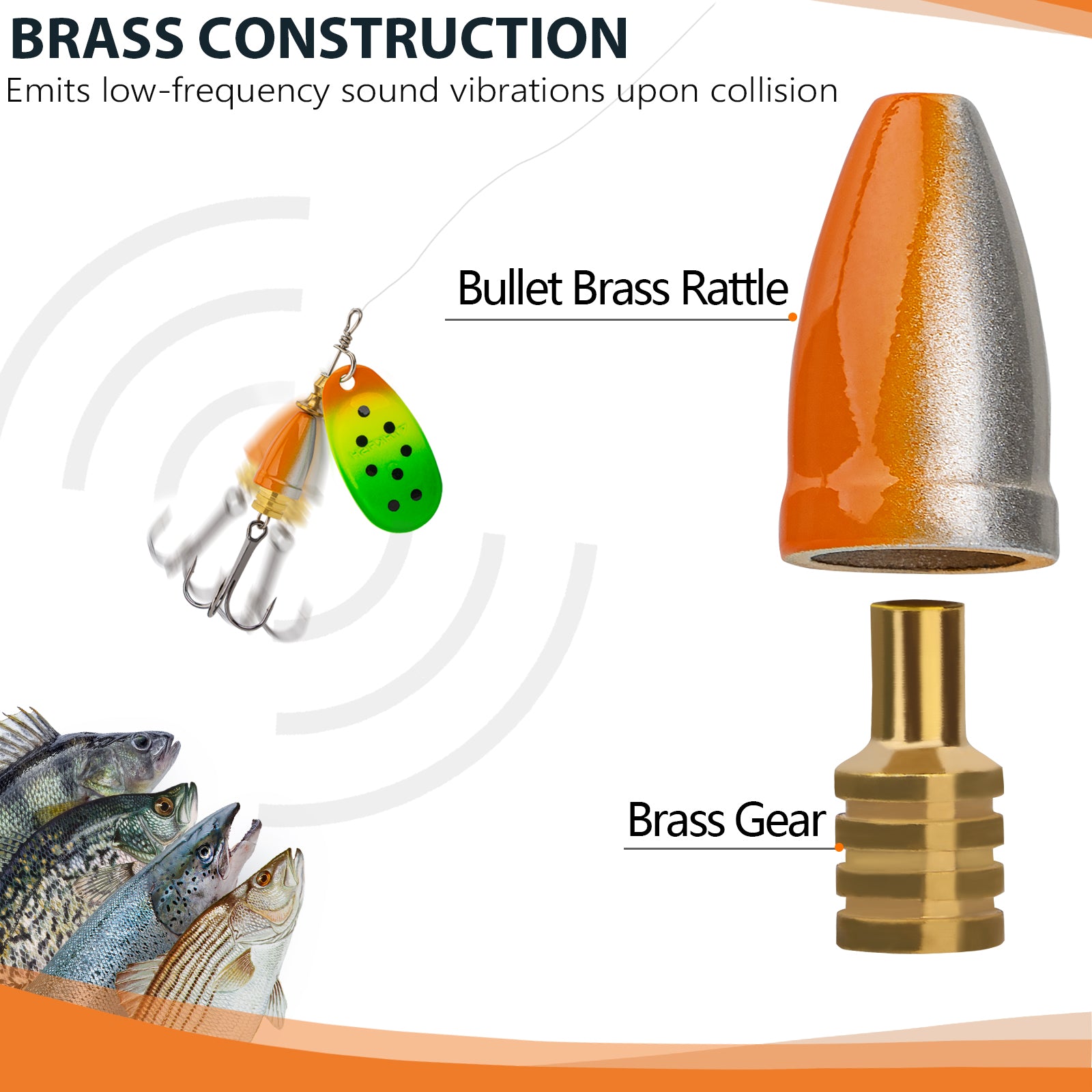 - Machined Brass Main Body: Each spinnerbait features a free-turning brass gear that emits low-frequency sound vibrations when it collides with the external brass bell. This unique design attracts fish and triggers strikes while virtually eliminating line twist. The 360° highly rotating alloy blades create a fatal attraction for target fish.