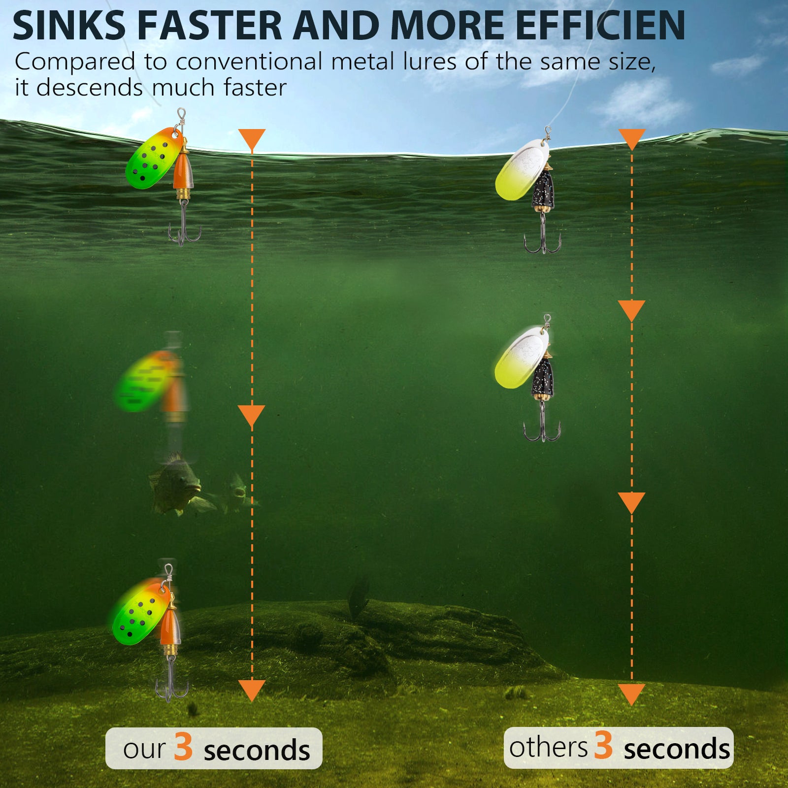 - Sinks Faster and More Efficiently: The THKFISH spinner fishing lure is designed to sink faster than conventional metal lures of the same size. This allows it to quickly reach the target fish's habitat, significantly enhancing your fishing efficiency. The higher density of brass also aids in achieving precise long casts.