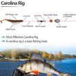 Effective Carolina Rig: Enhance your bass-catching game with the Carolina Rig technique. Whether in shallow waters or deep expanses, this rig delivers optimal performance away from thick covers like points, sunken islands, and weedlines.