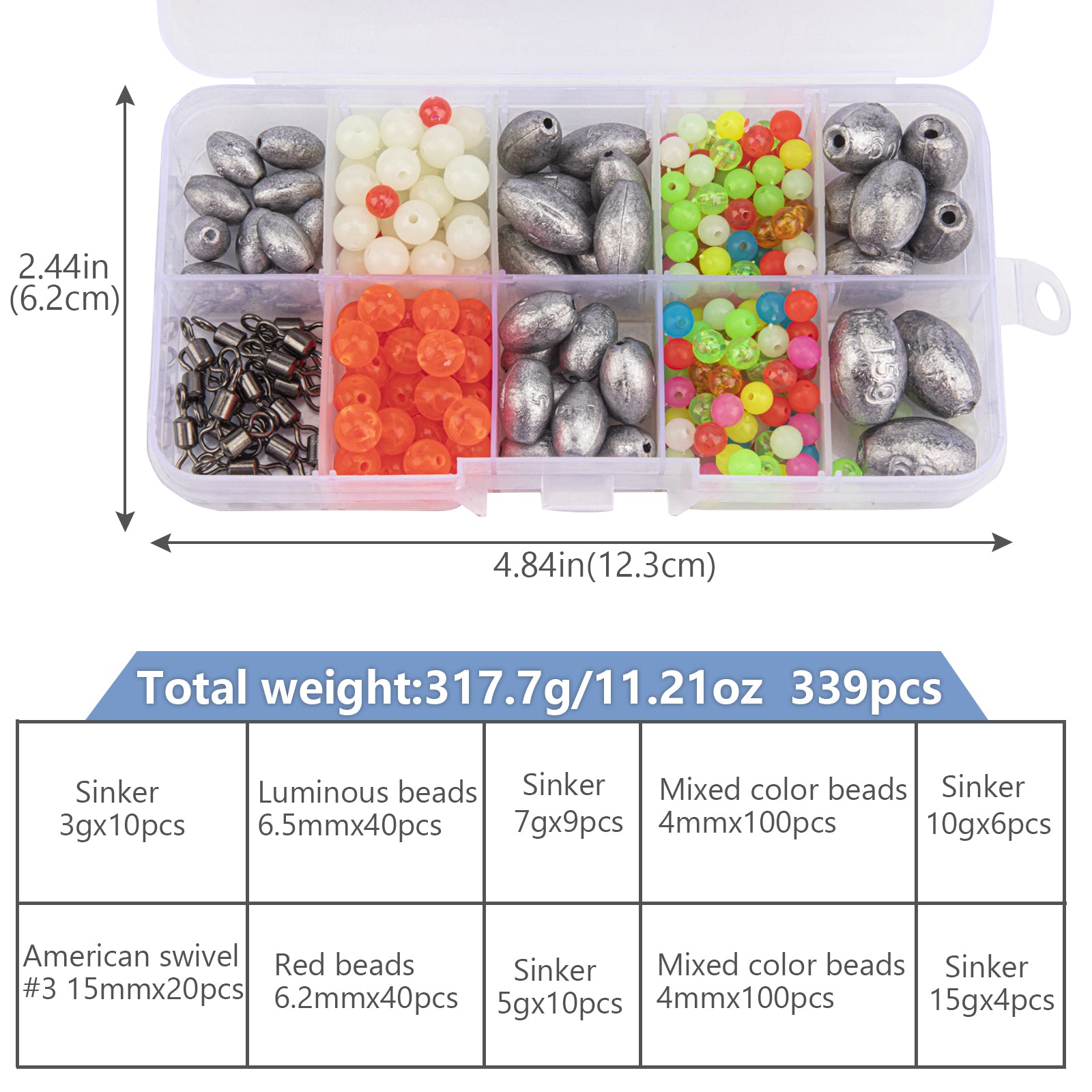 Comprehensive Fishing Tackle Kit: With 339 pieces including fishing weights, beads, swivels, hooks, and more, this kit is a treasure trove of fishing accessories. Say goodbye to searching for individual components and hello to convenience and efficiency.